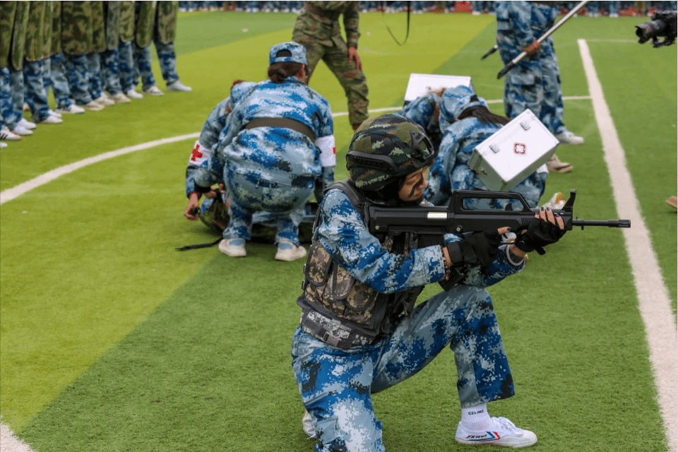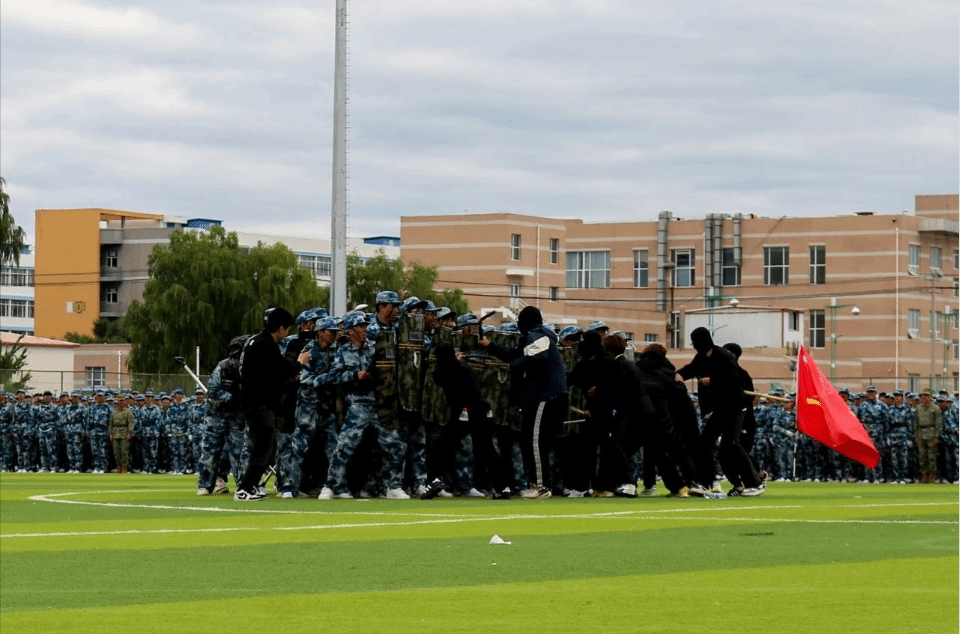 军体拳方阵、国旗班的表演将现场气氛推向了高潮。他们身姿挺拔,步伐铿锵,一招一式都充满了力量与美感,充分展示了军训期间的刻苦训练成果和青春活力。他们动作标准、气势磅礴、飒爽英姿。也为新生们树立了学习的榜样,更是对新生们的一次激励。