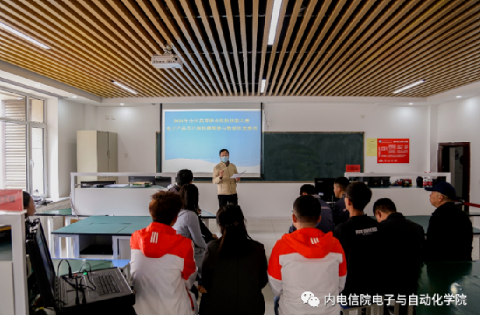为了积极响应本次赛事,学校、学院领导给予了高度重视和大力支持,电子与自动化学院本着公平、公正、公开的原则按照自治区教育厅要求,对标国赛标准,积极筹备,从竞赛场地的布置到竞赛设备的标准做到与国赛零差别,为参赛选手营造国赛氛围。比赛当天,我校教务处祁培丽副处长、电子与自动化学院刘占伟院长亲临现场,参加比赛开幕式。