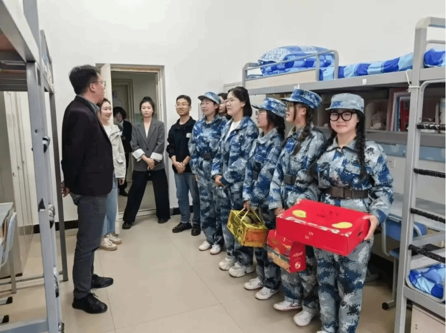 慰问过程中,系领导和辅导员们与学生亲切交谈,深入了解他们的学习和生活情况,特别是对新生的适应过程给予了关注与鼓励,勉励他们尽快融入大学生活,并坚持完成军训任务。此外,学院还为每位同学精心准备了月饼和节日礼物,使大家在异地也能感受到节日的喜悦与家的温暖。