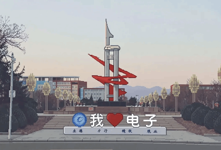 现实里,“我❤️电子” 雕塑是校园精神的具象,见证着学子的成长与奔赴。次元化后,像素重构的线条与色彩,让这份热爱与坚守多了几分复古游戏般的热忱,无论哪个次元,立德树人、精技兢业的信念始终闪耀。