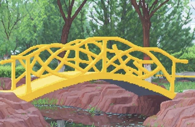 现实中,小黄桥是校园一隅的灵动点缀,流水绿树环绕,满是青春的清新。次元化后,像素勾勒的色彩与造型,把小桥变成了童话绘本里的场景,仿佛下一秒就会有动漫角色踏上桥,开启奇妙际遇。