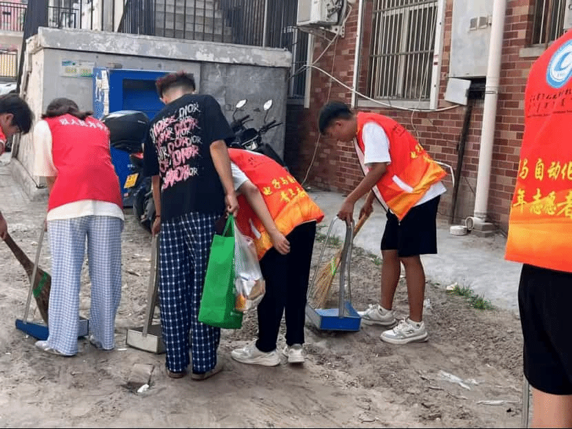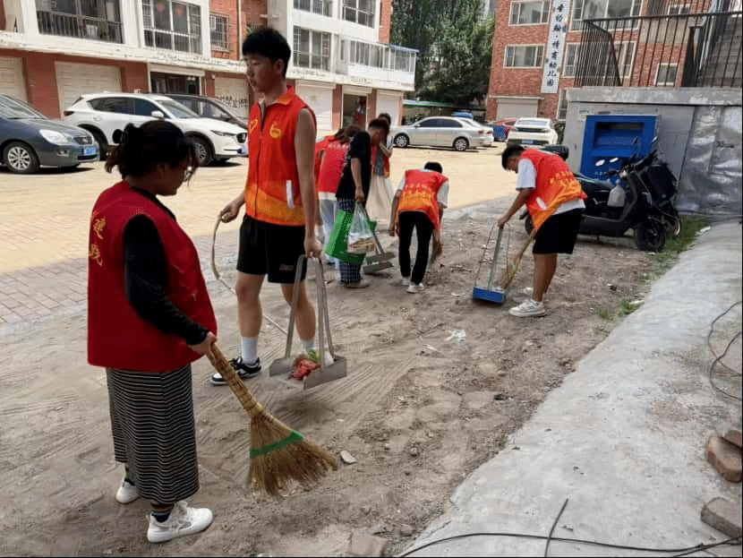 师生们还主动参与社区卫生打扫工作。尽管天气炎热,大家却热情高涨。他们手持扫帚、拖把等工具,分工明确,有的清扫道路落叶纸屑,有的擦拭宣传栏和健身器材,有的清理楼道杂物。经过一番努力,社区环境焕然一新,赢得了居民们的一致称赞。
