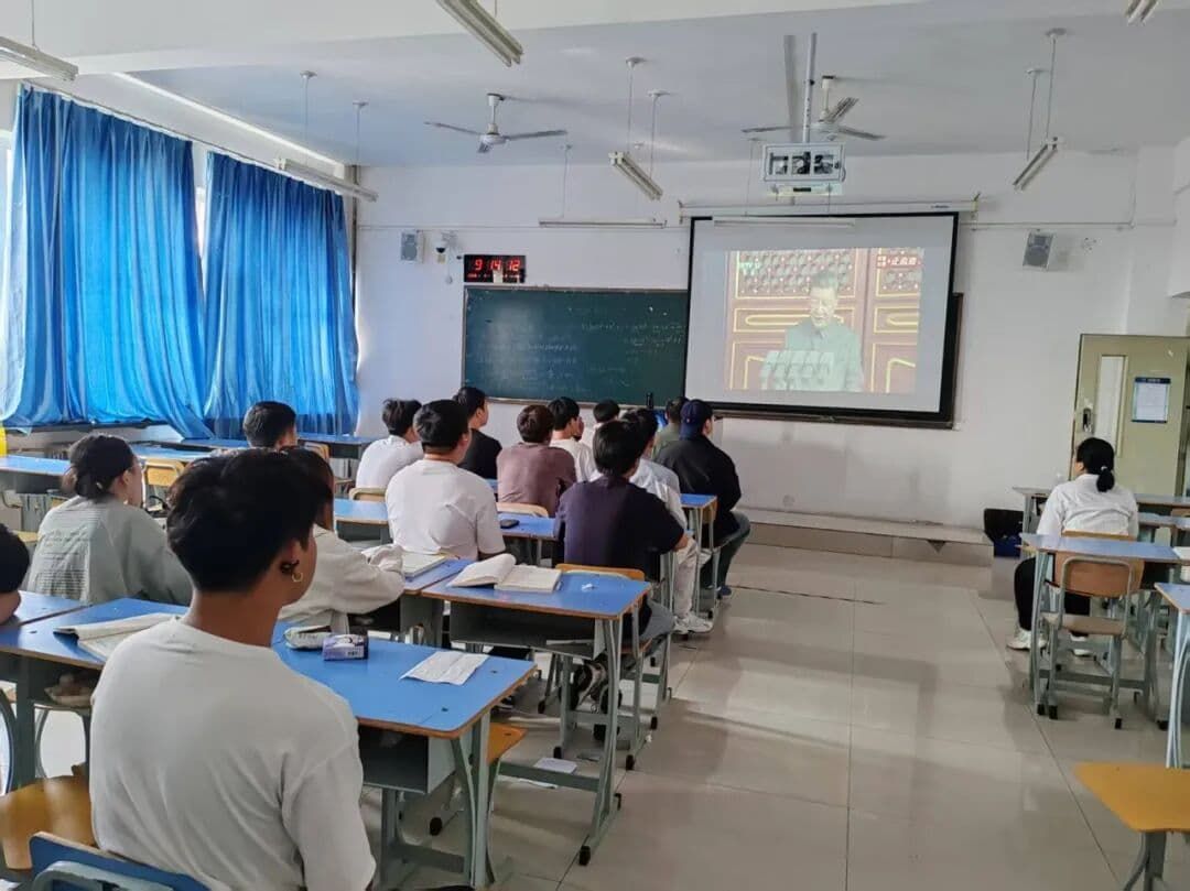 当天上午,校园内洋溢着庄重而热烈的氛围。各班级早早打开多媒体设备,调试好直播信号,师生们怀着激动的心情,整齐就座,等待着阅兵仪式的开始。