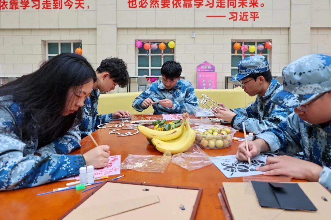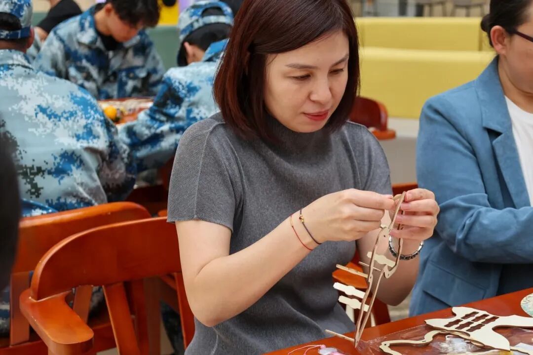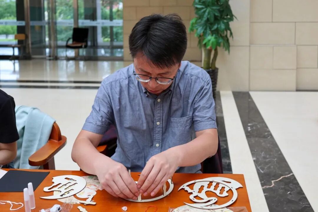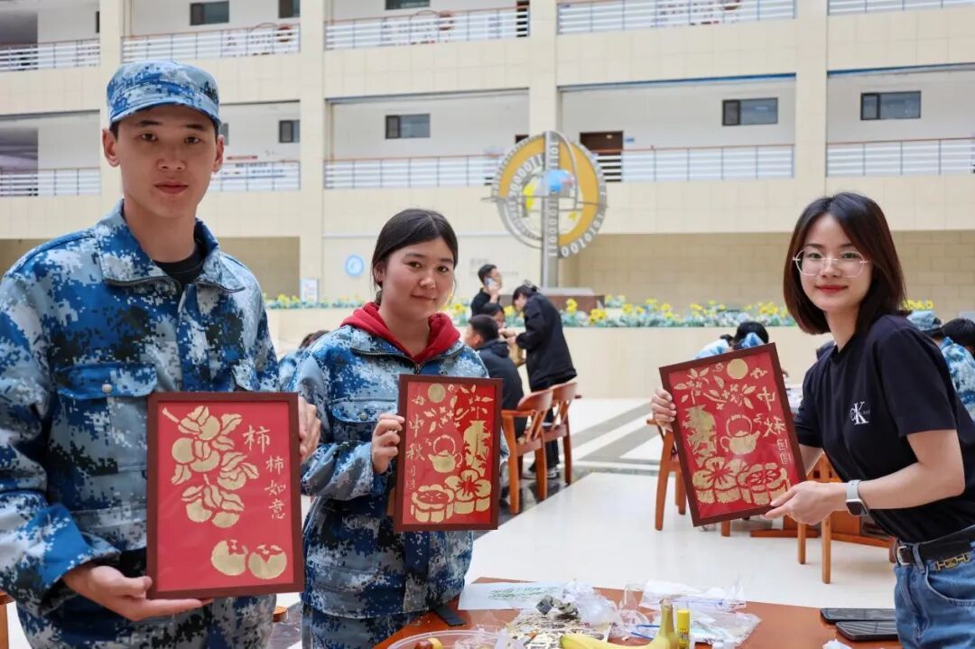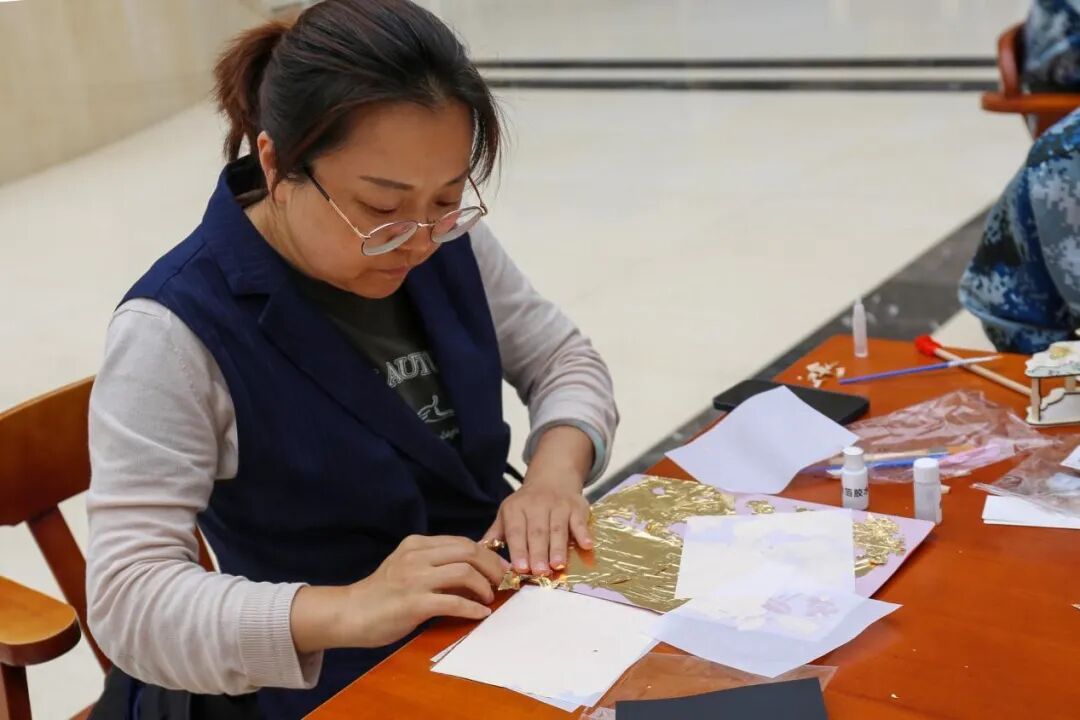 分享结束后,同学们开始动手制作灯笼和非遗金箔画。在老师的悉心指导下,大家充分发挥创意,制作出了一盏盏精美的灯笼和一幅幅璀璨的金箔画。这些作品不仅展示了同学们的才艺,也为活动现场增添了浓厚的节日气氛。