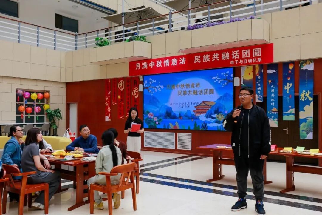 月到中秋分外明,佳节浓情暖人心。为了传承和弘扬中华优秀传统文化,丰富同学们的校园文化生活,促进各民族学生之间的交流与融合,铸牢中华民族共同体意识。9月14日下午,电子与自动化系在图书馆二楼开展“月满中秋情意浓民族共融话团圆”各民族师生庆中秋活动。学校党委副书记、校长林民,党委委员、副校长郑志丽深入活动现场,共同感受中华传统文化的独特魅力。