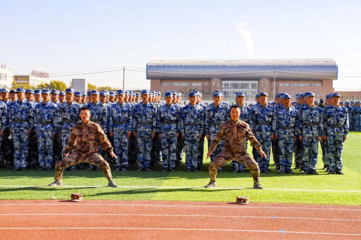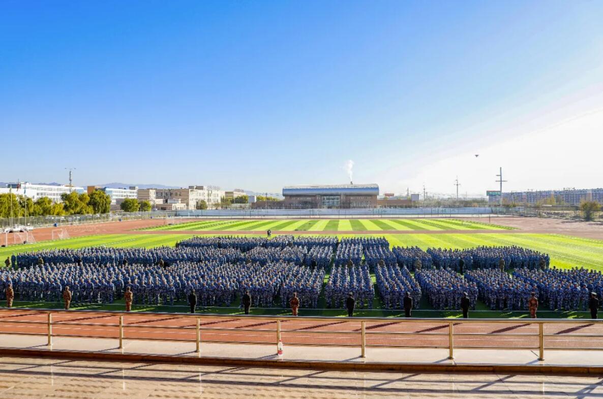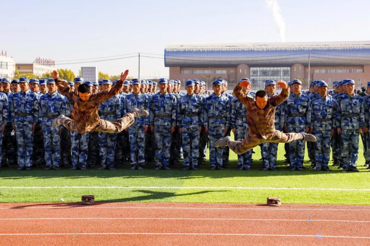 晨风吹皱云波,军装笔挺凛然,军魂铸入天边的光影,绰约镀成今天这份青春的底卷。2020年10月24日,2020级新生在操场举行了新生军训汇演。