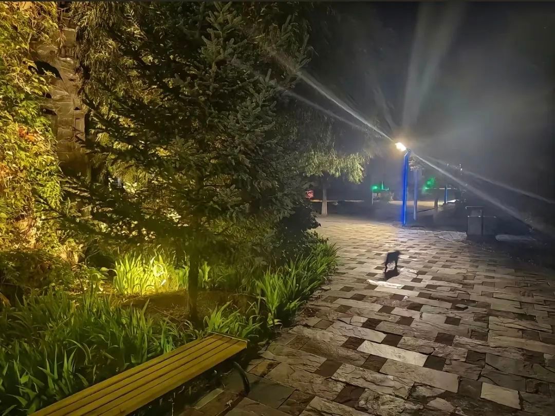 在校园幽僻的一角,昏黄的路灯散发着柔和光芒,光线穿过枝叶的缝隙,洒下斑驳光影。小径旁绿植繁茂,在微光下仿佛隐藏着无数秘密。生命阐述的密码在砖石路上徘徊,为宁静的夜增添了几分灵动。