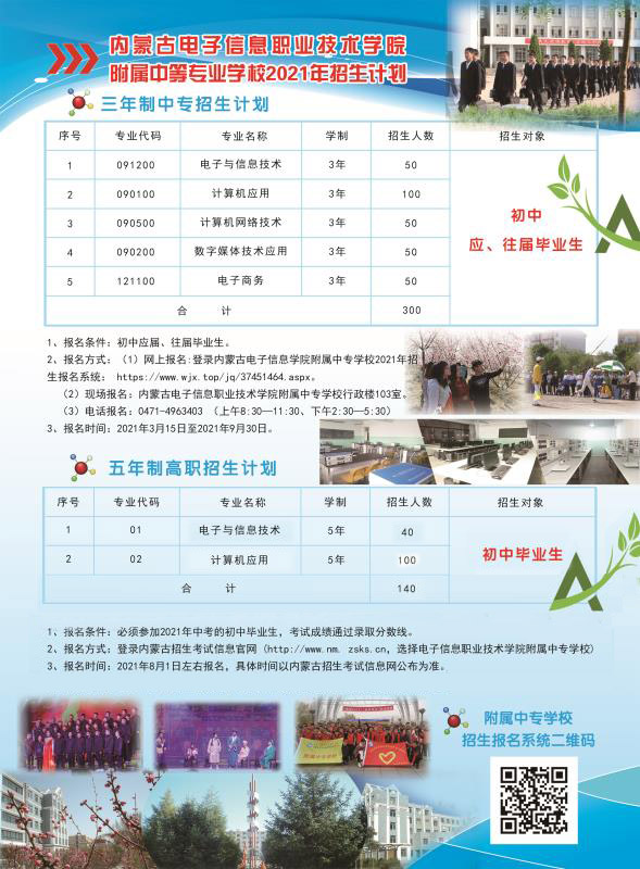 内蒙古电子信息职业技术学院附属中专学校2021年招生简章