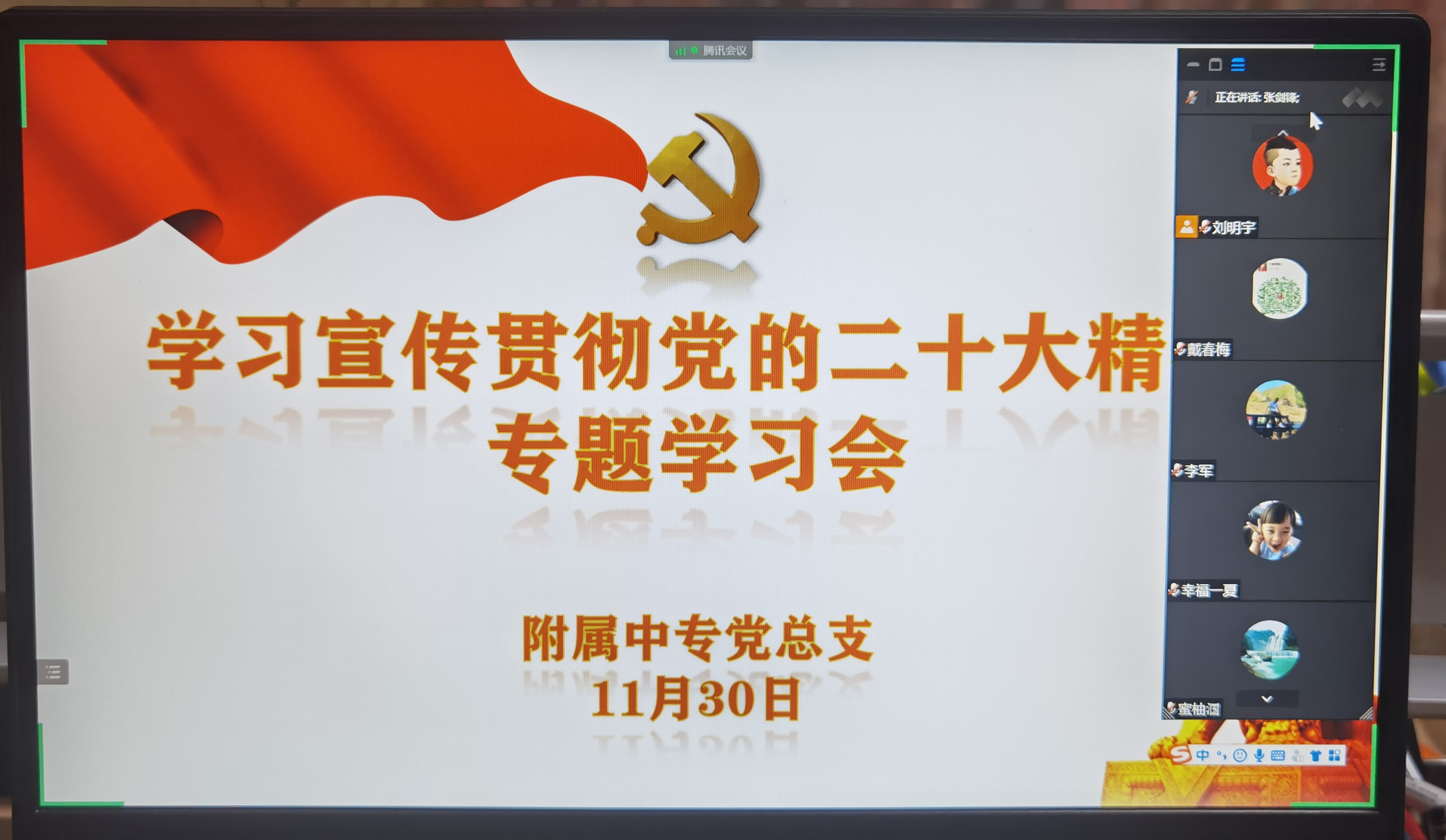 11月30日,附属中专组织全体教职工召开了党的二十大精神专题线上集中学习会,会议由党总支宣传委员刘明宇主持。