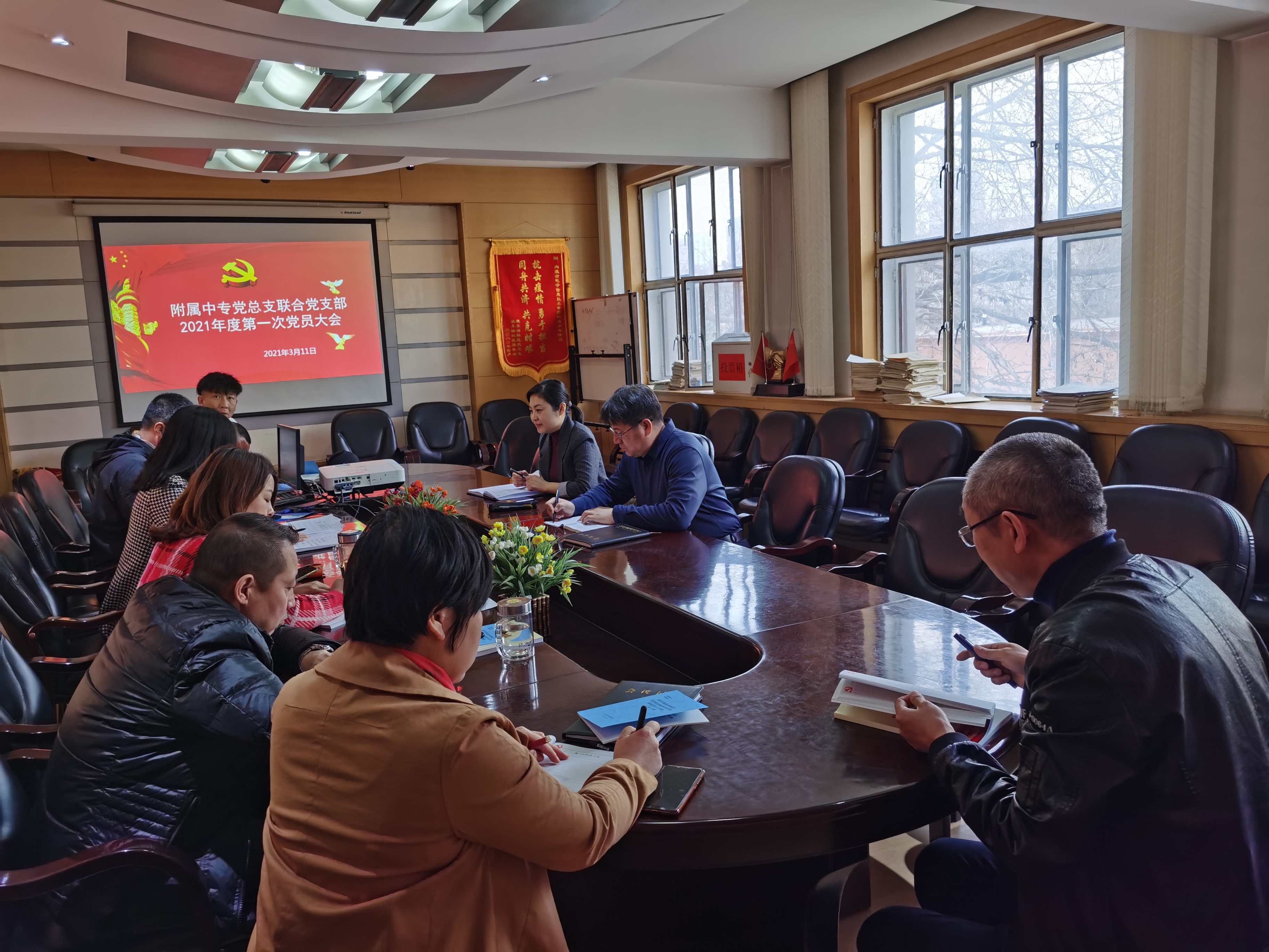 3月11日下午,附属中专党总支联合党支部在二楼会议室召开2021年度第一次党员大会,讨论《附属中专联合党支部2021年工作计划》。会议由党支部书记戴春梅主持,全体党员参加会议。
