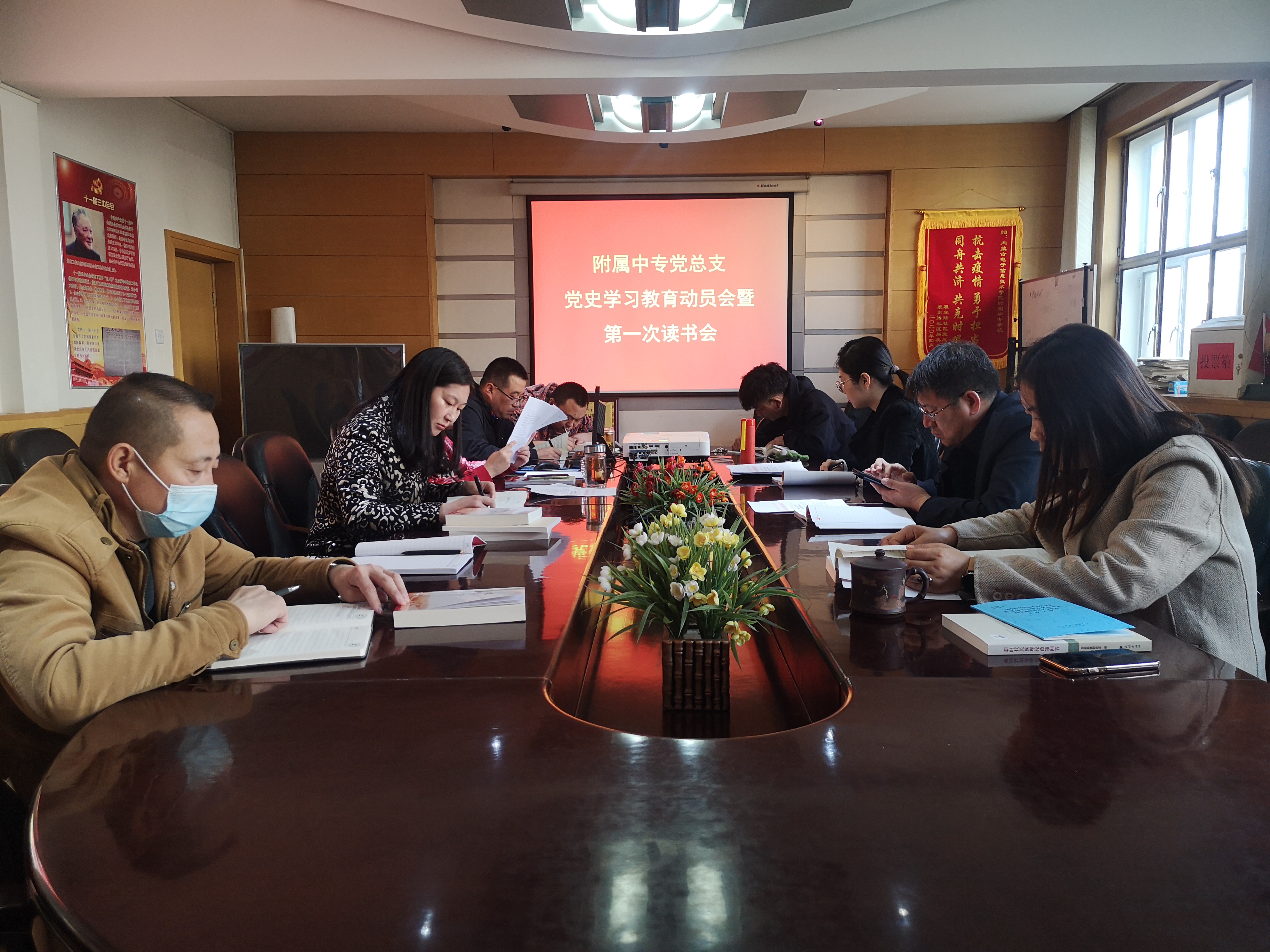 按照学院关于开展党史学习教育的部署要求,附属中专党总支于4月9日上午召开党史学习教育动员会暨第一次读书会,全体党员及副科级以上干部参加,会议由办公室主任潘红霞主持。