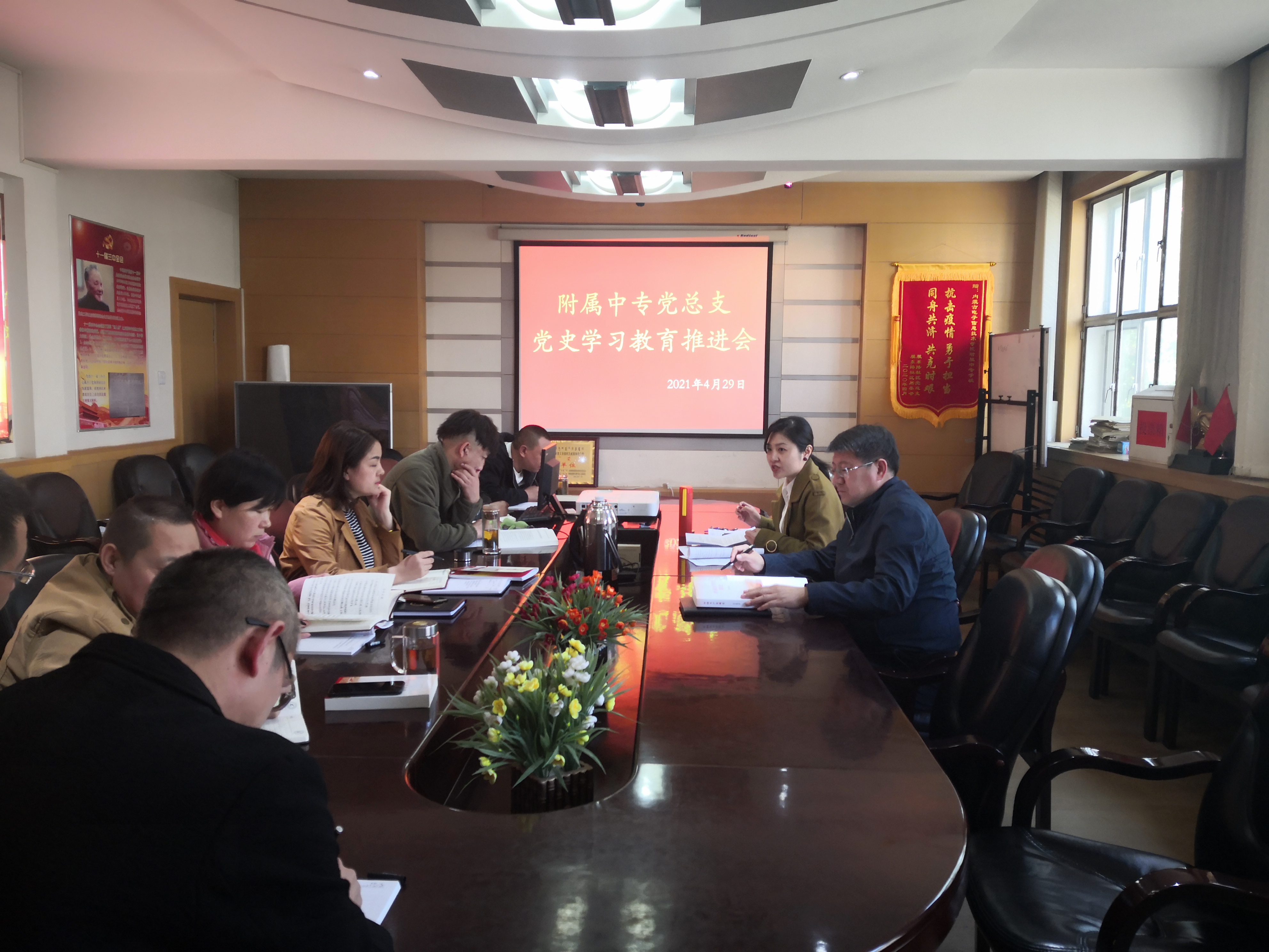 按照学校关于开展党史学习教育的部署要求,附属中专党总支于4月29日下午召开党史学习教育推进会,全体党员参加,会议由党总支书记雷欣欣主持。