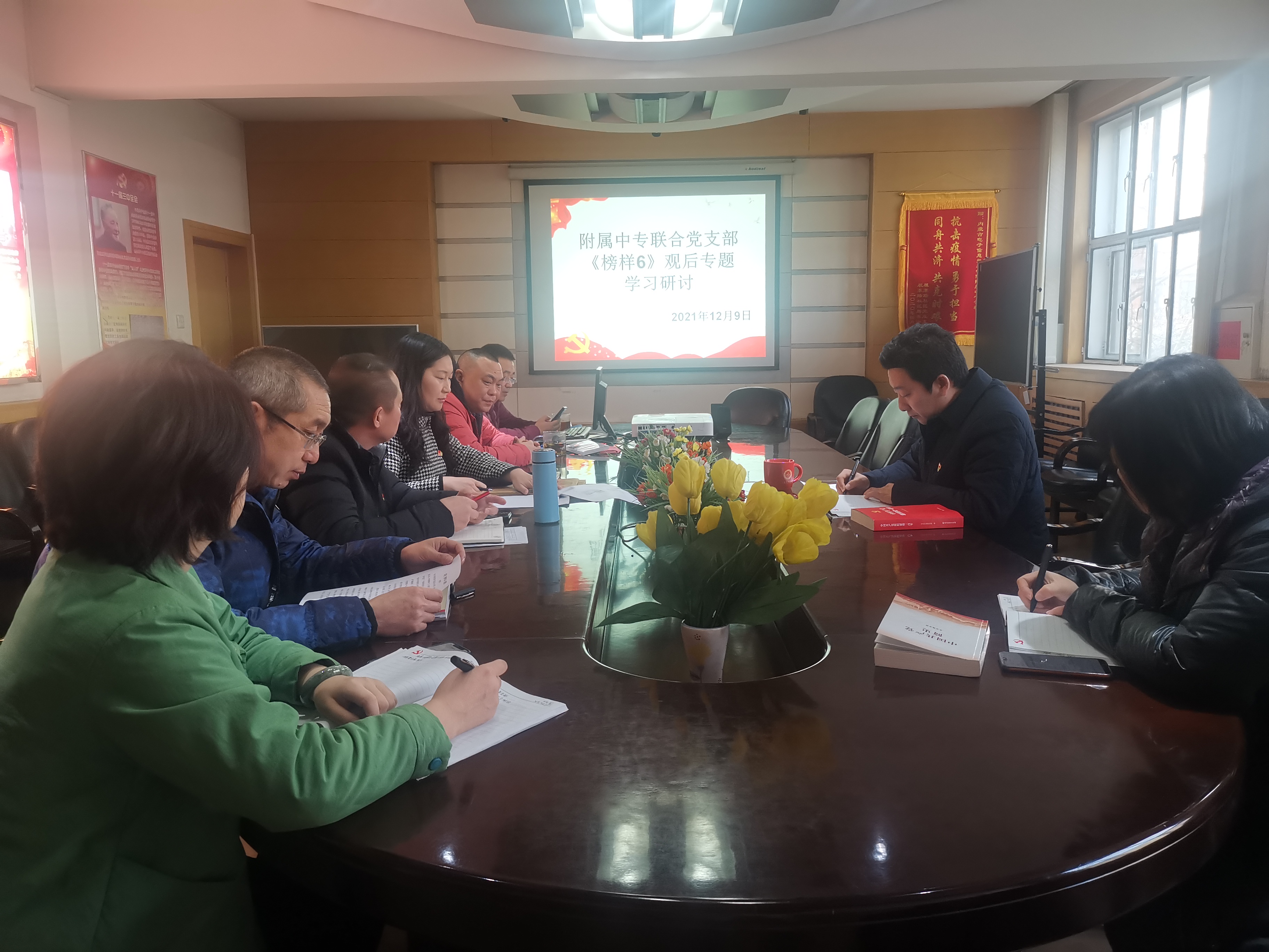 按照学校党委组织部统一安排,12月8日晚,附属中专党总支每位党员通过网络、电视、客户端等方式观看了《榜样6》建党100周年特别节目。9日下午,在二楼会议室组织全体党员进行了集中研讨,交流观看心得体会,会议由党总支书记张剑锋主持。