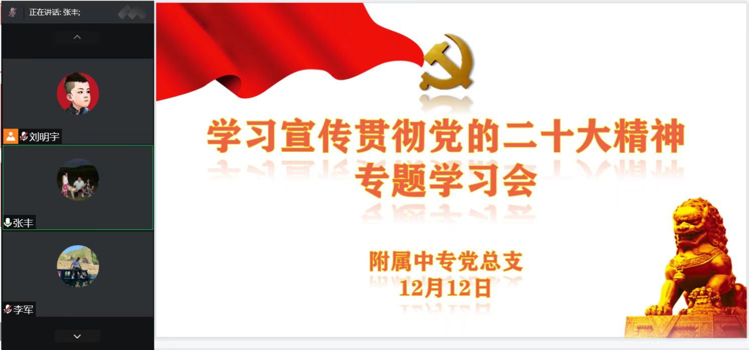 12月12日,附属中专组织全体教职工召开了党的二十大精神专题线上集中学习会,会议由党总支宣传委员刘明宇主持。