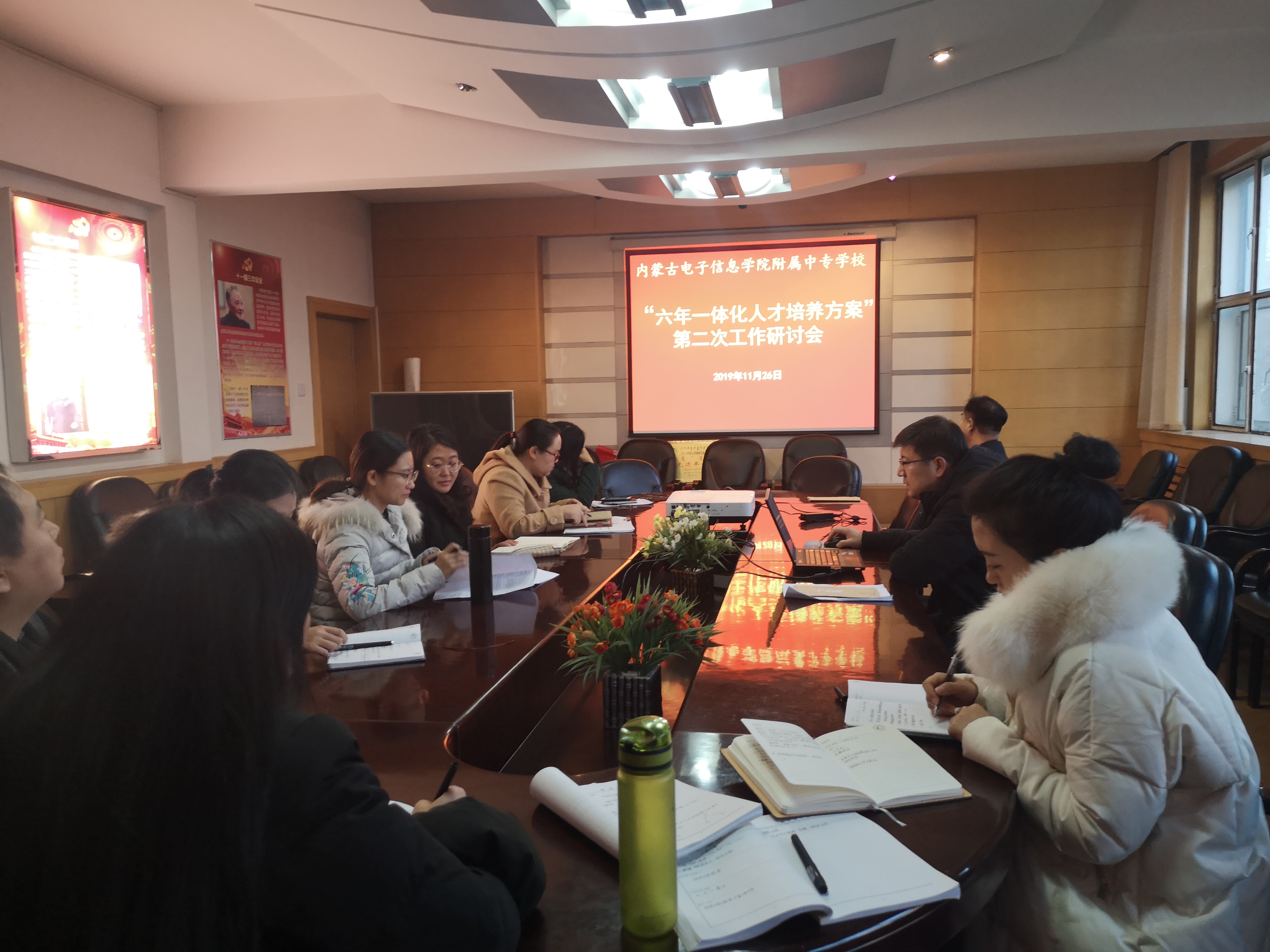 2019年11月26日下午,附属中专学校在行政楼二楼会议室召开了计算机应用专业、计算机网络专业、电子信息工程专业、电子商务专业四个专业中高职“六年一体化人才培养方案”第二次工作研讨会。会议由靳洪玲校长主持,各专业负责人和相关教师参加。