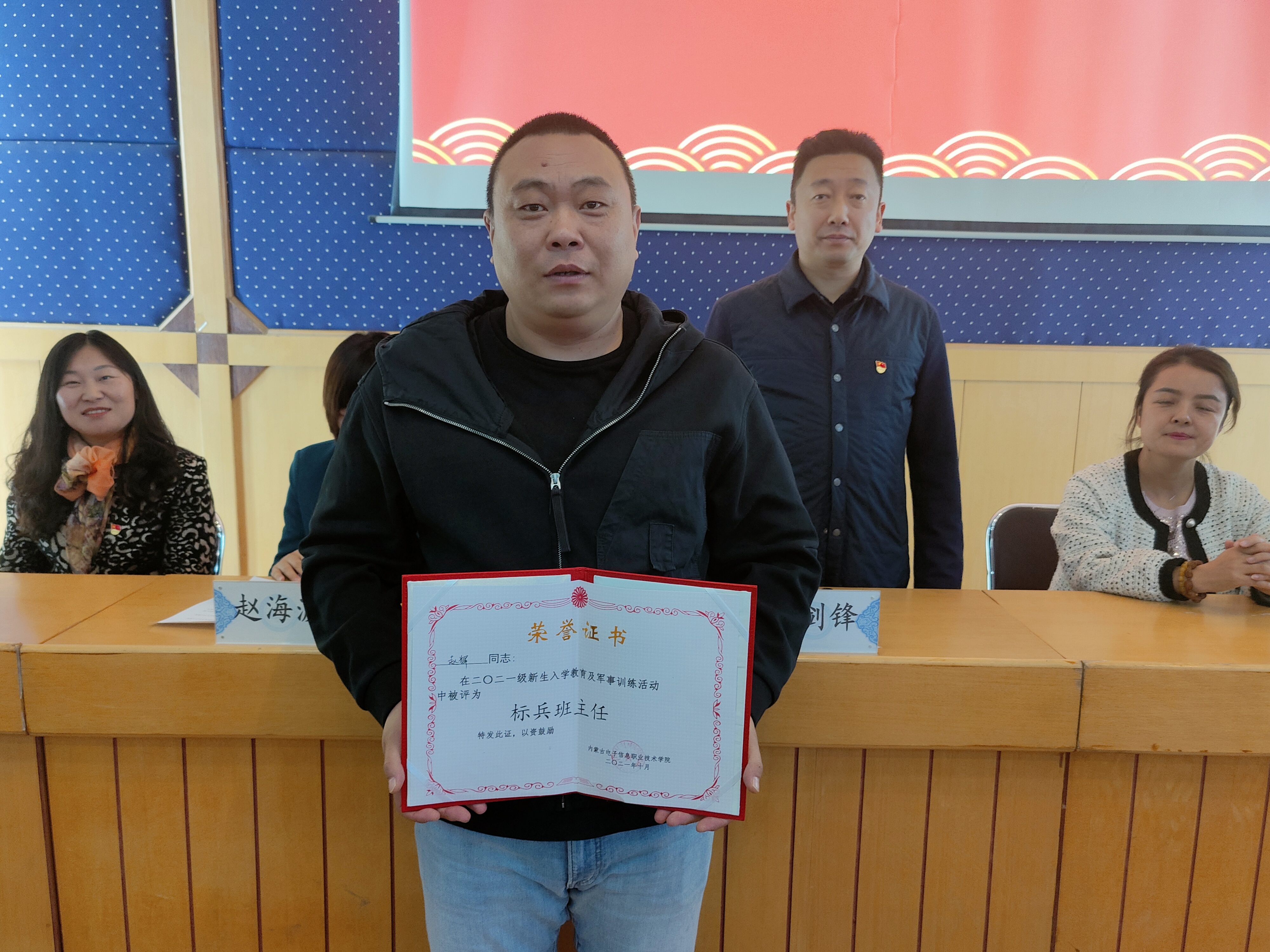 随后,校领导为军训先进集体及先进个人颁发荣誉证书。