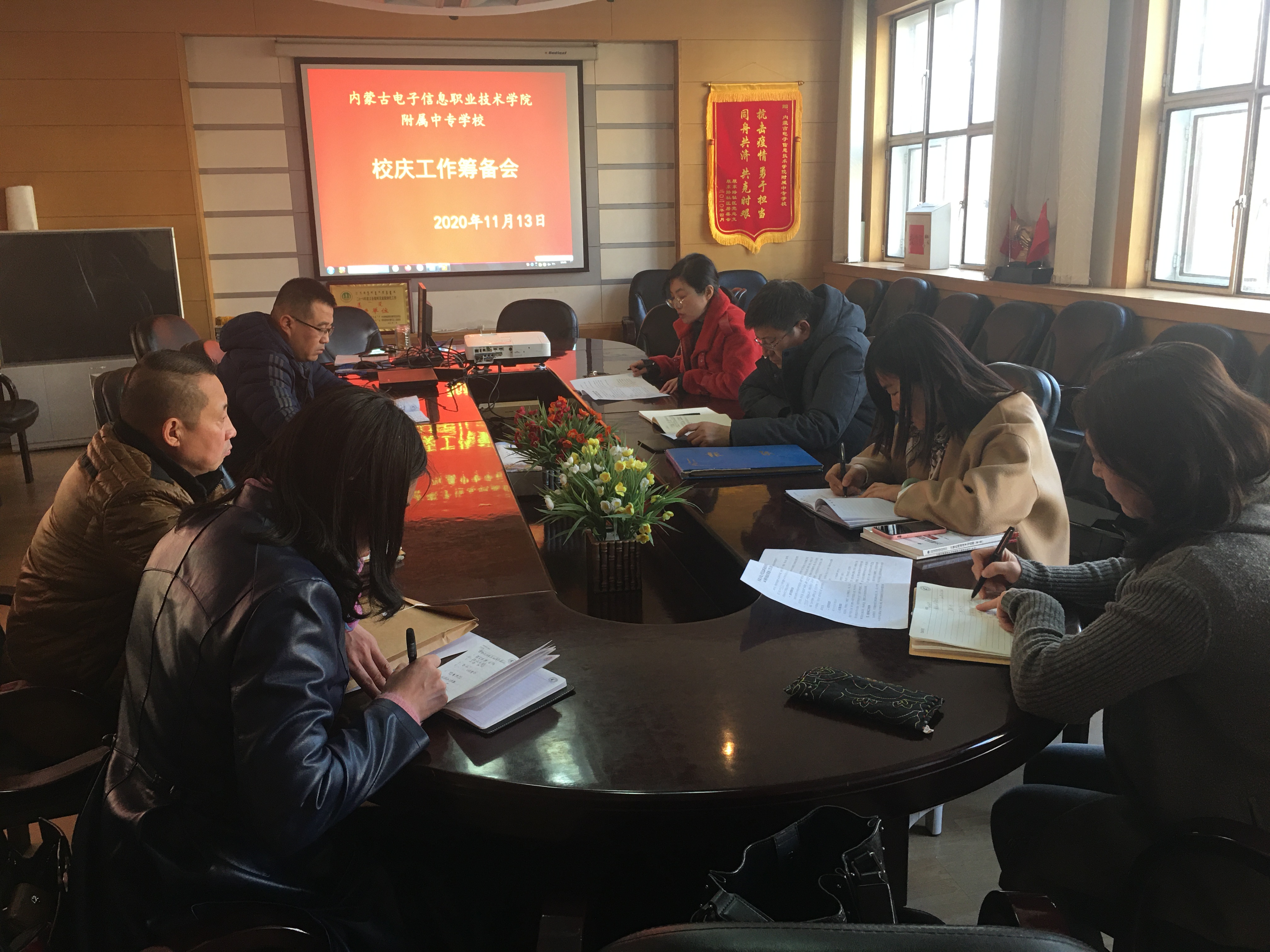 11月13日下午14:40,附属中专学校在会议室召开校庆工作筹备会。学校副科级以上人员、部分教职工参加会议,会议由校长靳洪玲主持。