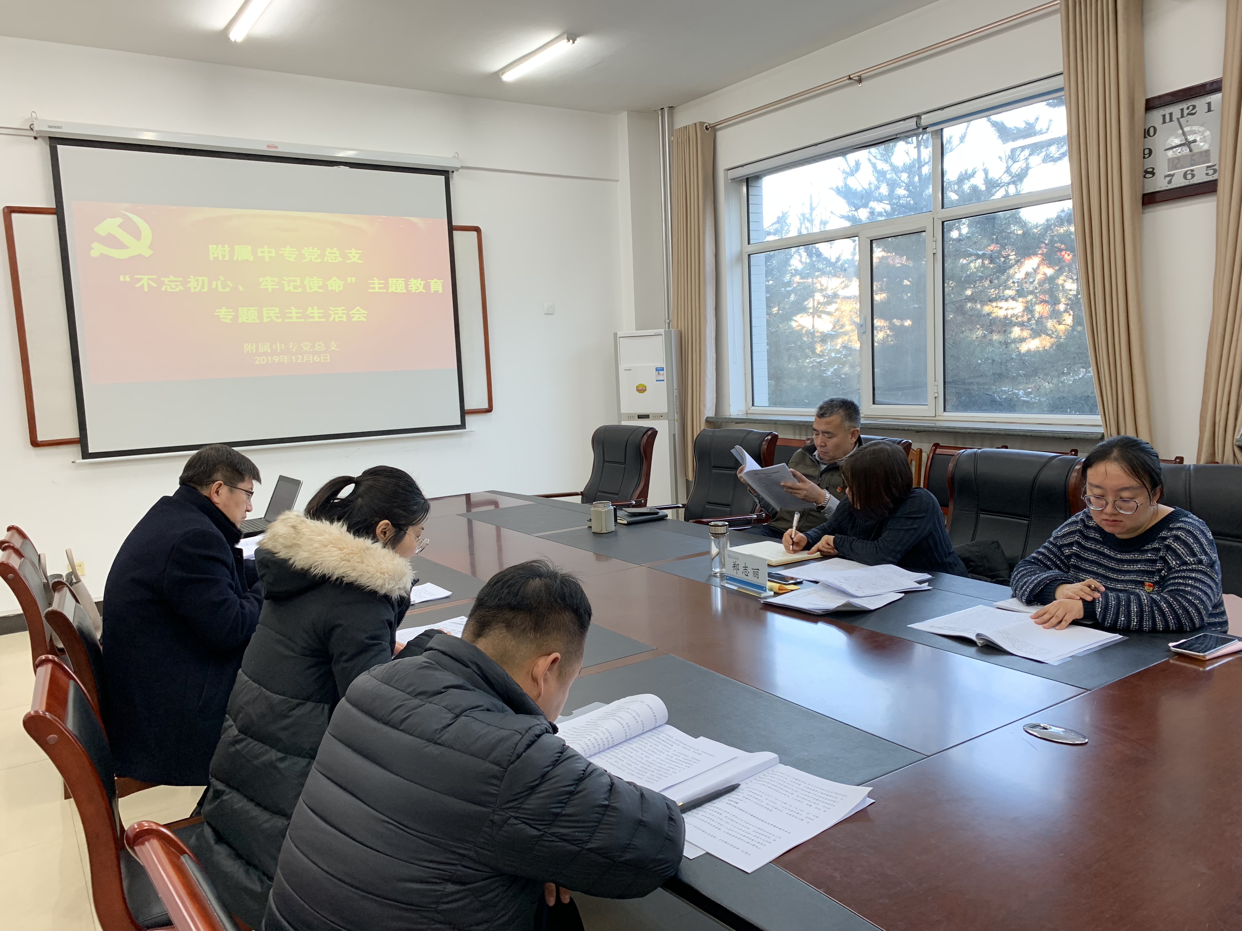 根据学校“不忘初心、牢记使命”主题教育工作安排,12月6日上午, 附属中专党总支“不忘初心、牢记使命”主题教育专题民主生活会在行政楼215会议室召开。学院副院长郑志丽、纪检监察处处长李永才及组织部干部(考核)科科长窦美莎列席指导。附属中专学校领导班子成员雷欣欣、靳洪玲、刘明宇、赵海波参加会议。