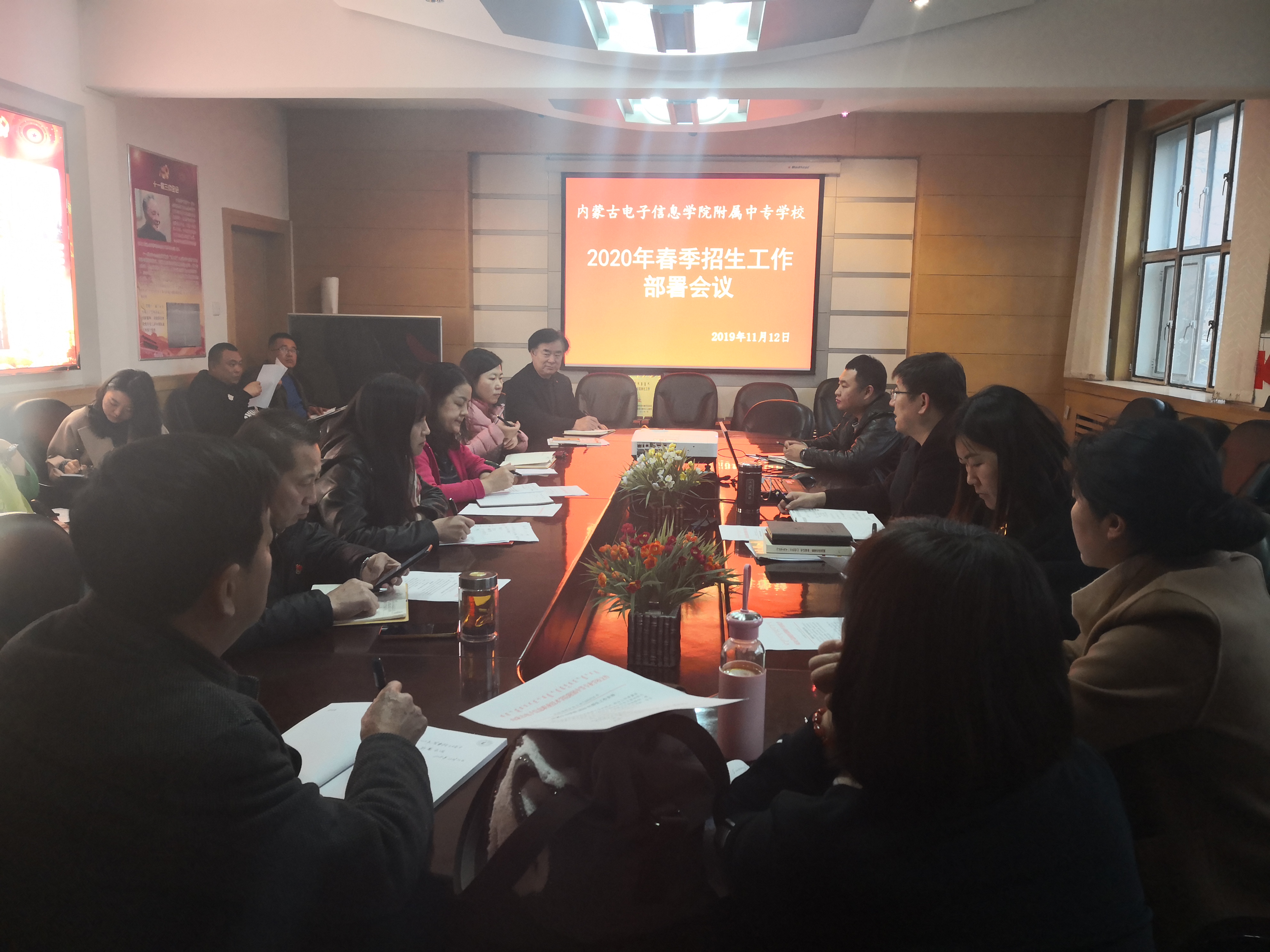 2019年11月12日下午,附属中专在行政楼二楼会议室召开了2020年招生工作动会议。全体教职工参加会议,靳洪玲校长主持。