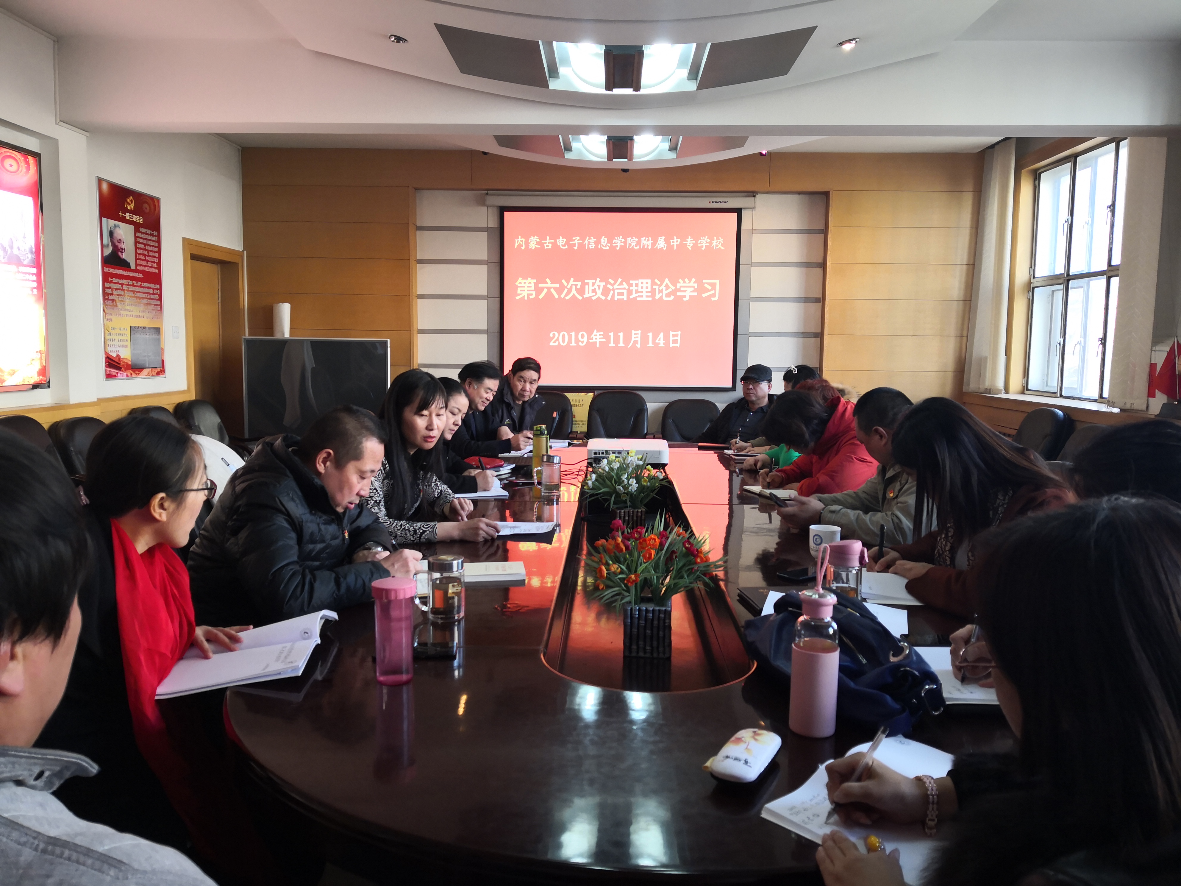 2019年11月14 日下午,附属中专学联合党支部校召开了“不忘初心、牢记使命”主题教育第六次学习班,附属中专学校全体教职工参加了会议。会上,党支部书记戴春梅带领大家学习了学习“习近平总书记考察内蒙古大学时的重要指示精神”以及深入学习习近平总书记在“不忘初心、牢记使命”主题教育工作会议上的重要讲话精神。