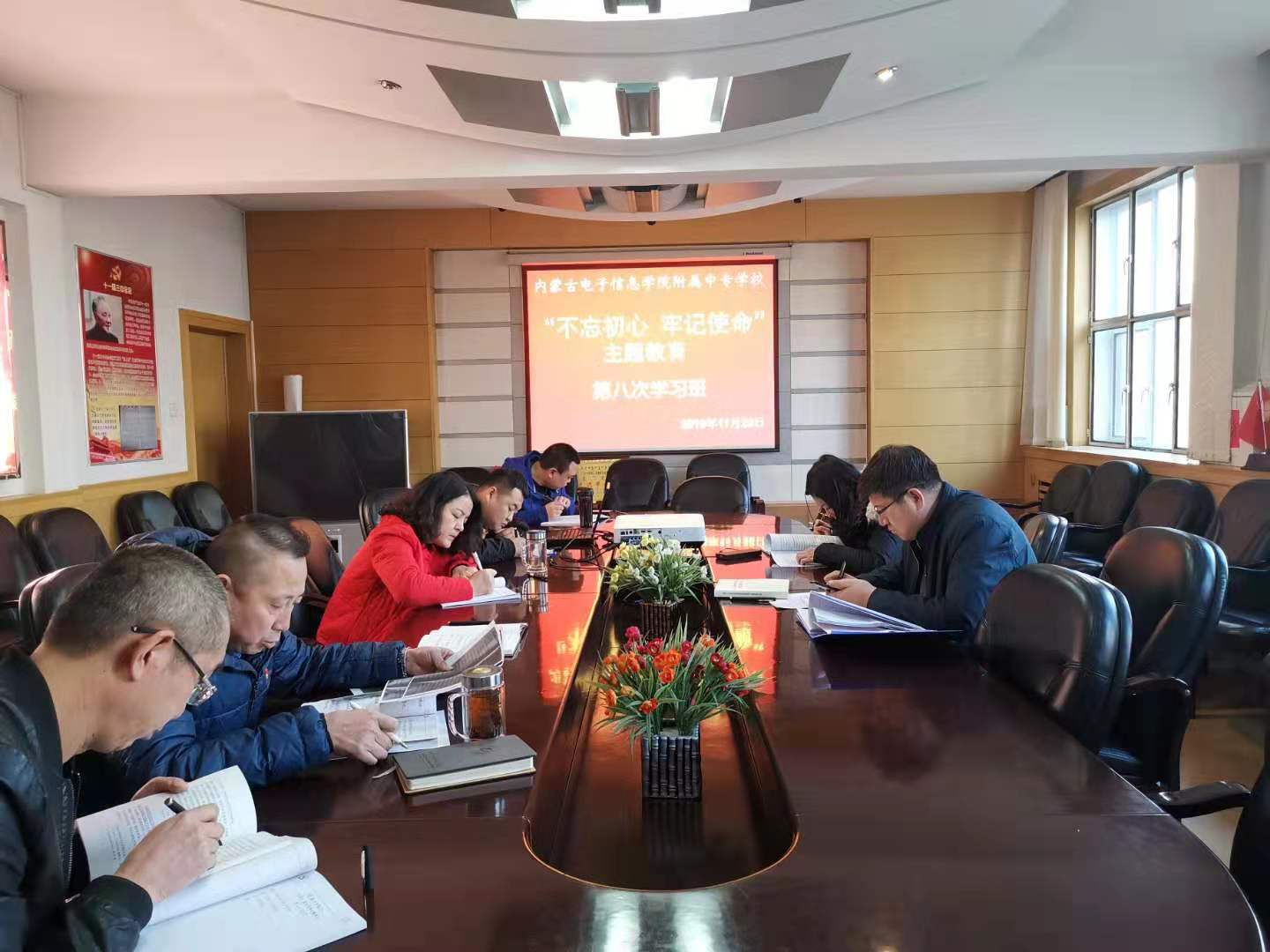 11月28日下午,附属中专学校联合党支部召开“不忘初心、牢记使命”主题教育第八次学习班。党支部书记戴春梅主持,全体党员参加了学习。