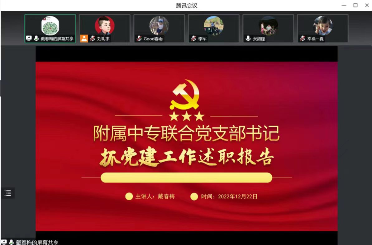 12月22日,附属中专党总支于线上召开2022年度基层党支部书记党建工作述职评议大会。附属中专党总支书记张剑锋、党总支委员出席会议,联合党支部书记、委员以及党员教师参加会议,会议由党总支宣传委员刘明宇主持。