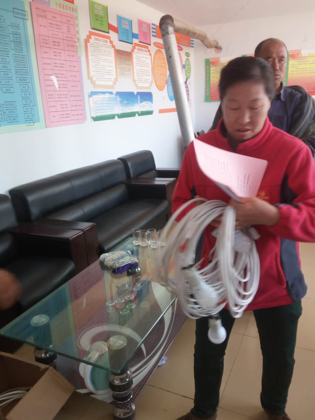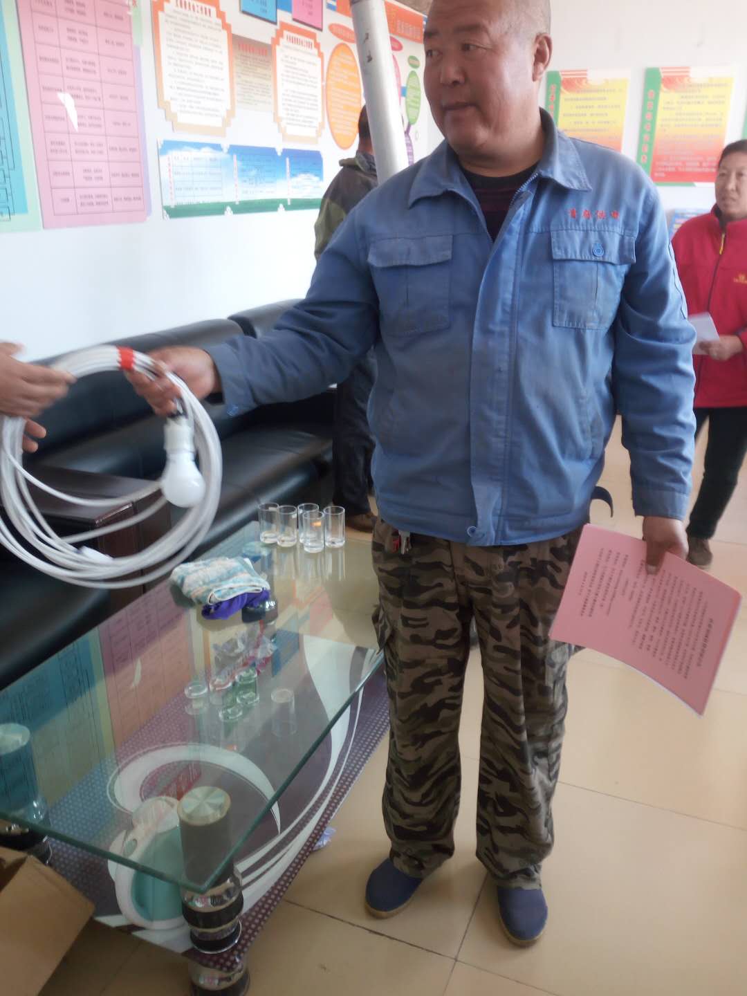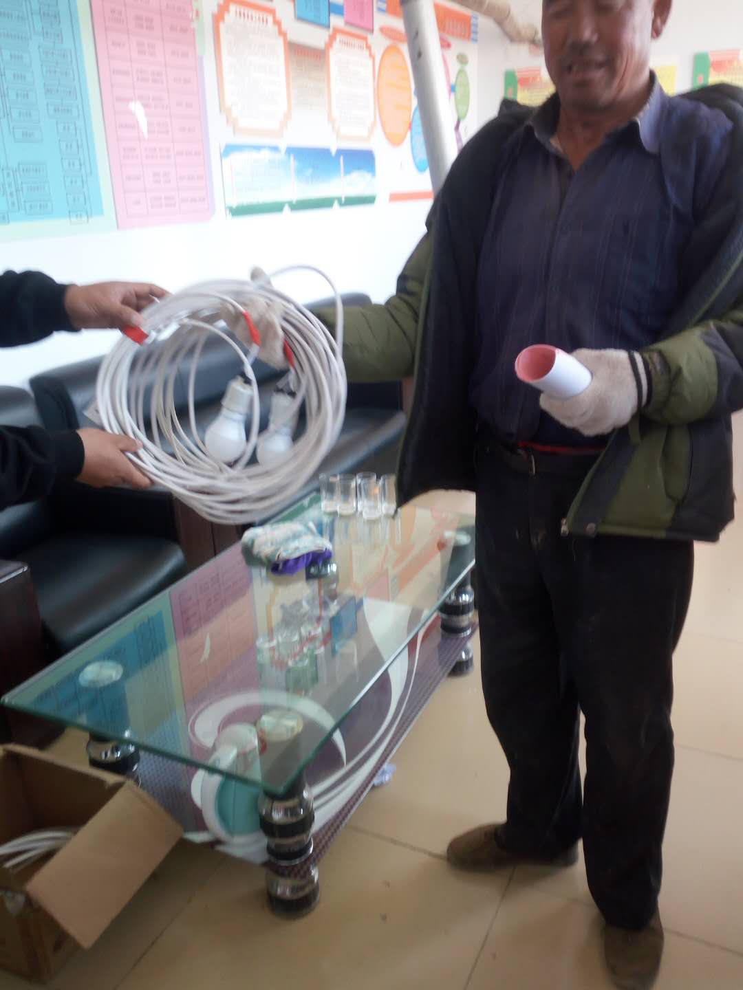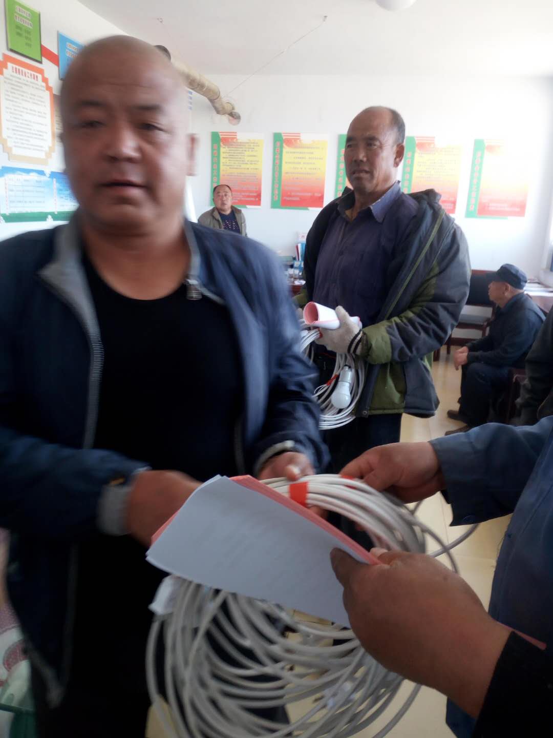 后勤党员于4月23日慰问四子王旗忽鸡图乡大清河村贫困户,为村民共计发放照明电料39套。