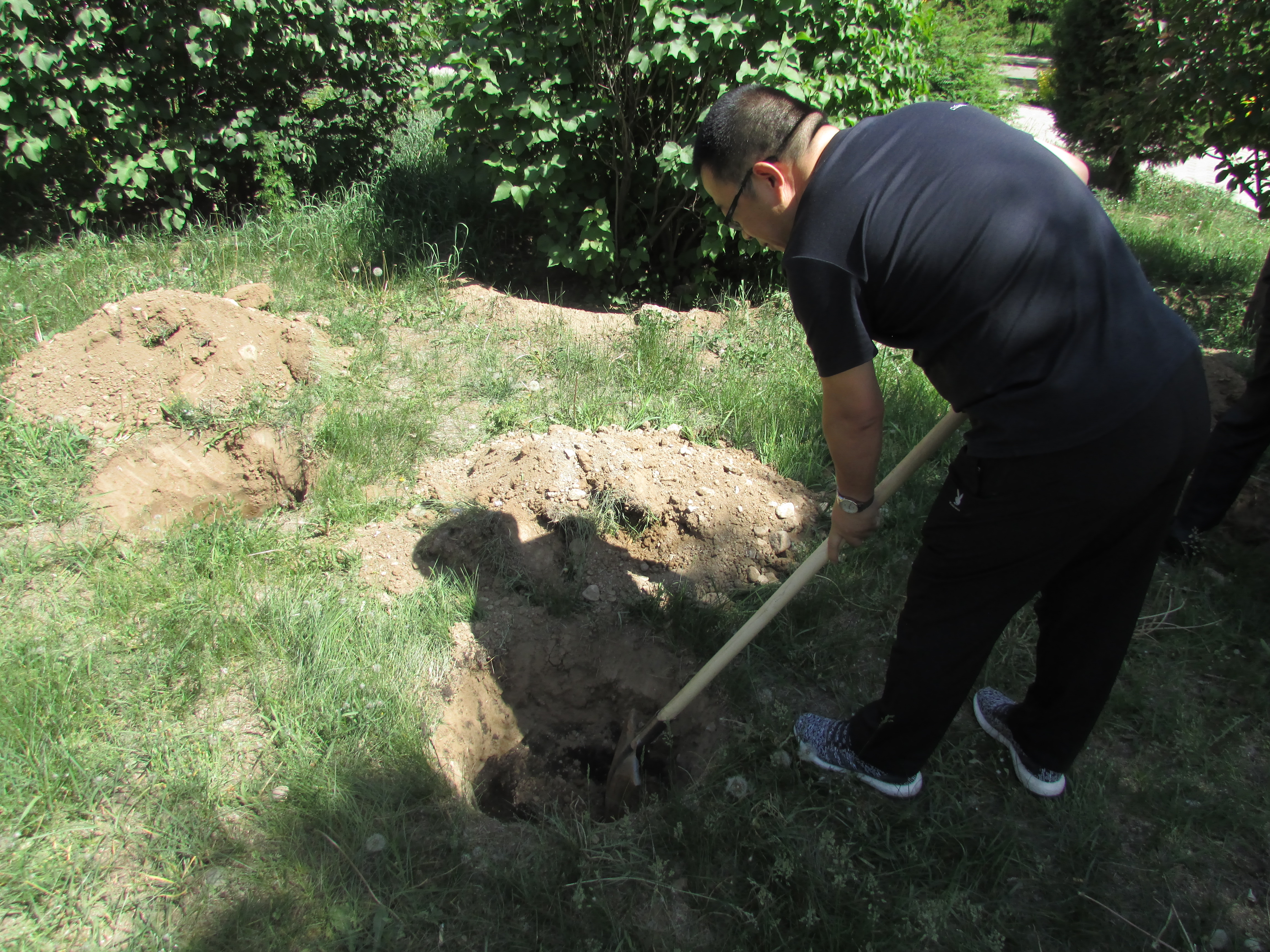 蒋蒙安同志一边植树,一边与身边干部职工亲切交谈,详细询问校园绿化有关情况。进一步明确责任、细化分工、落实任务、科学种植,最大限度提高校园绿化的质量和效果。