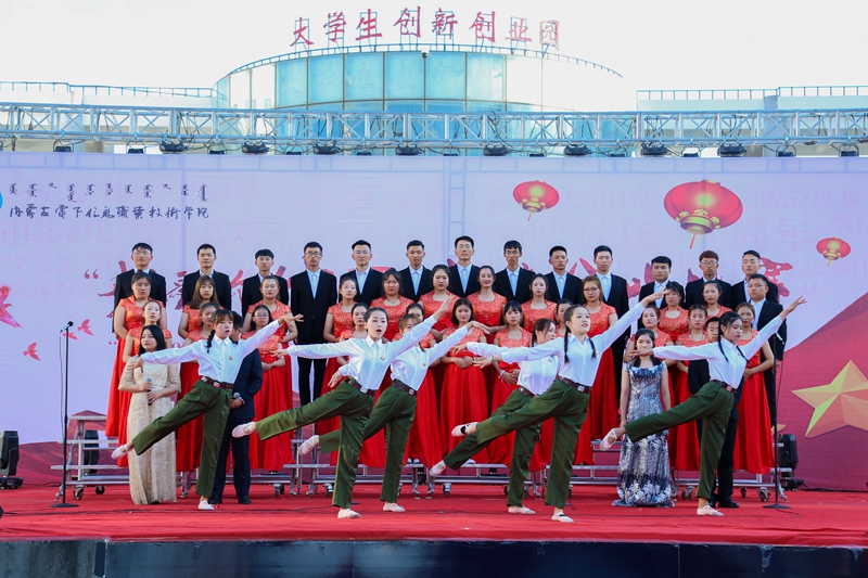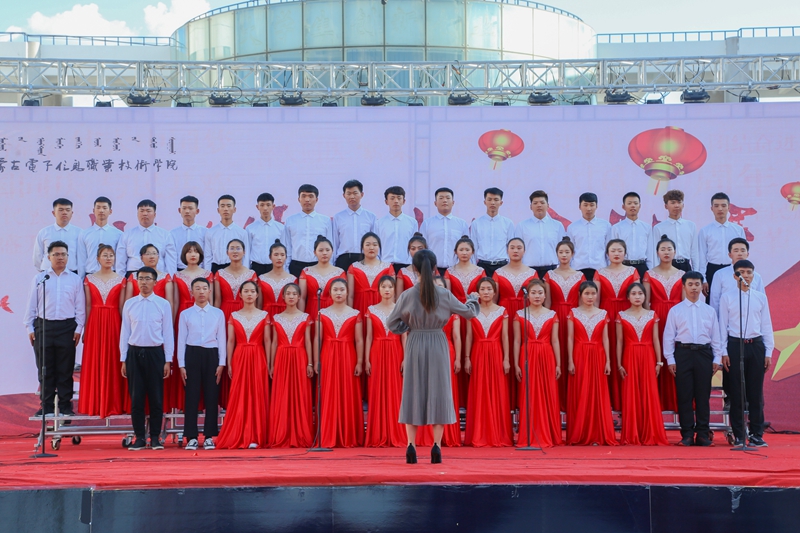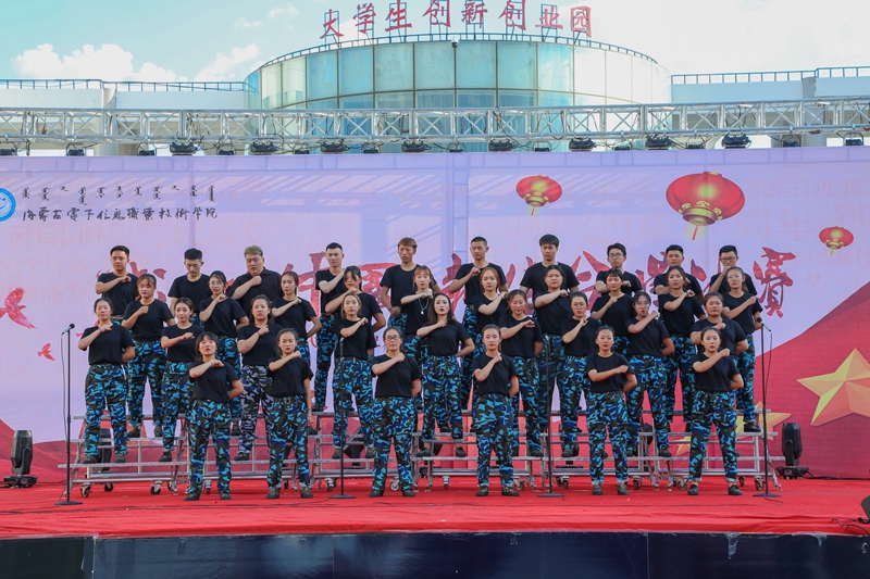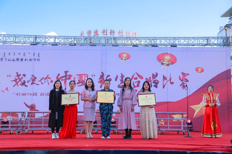 为庆祝中华人民共和国成立70周年,引导广大青年学生共抒爱国情怀,根据《关于组织开展内蒙古电子信息职业技术学院“我和我的祖国”主题宣传教育活动的通知》安排,9月24日下午,由学院团委承办,各二级学院和附属中专协办的“我爱你中国”新生合唱比赛在创业园门前广场举行。校团委和各二级学院、附属中专团总支负责人现场观看比赛,比赛邀请宣传部宣传思想教育科科长袁月天、数媒与艺术学院音乐专业教师武晓霞、李瑞老师担任评委。共有11支新生参赛队伍参加比赛。