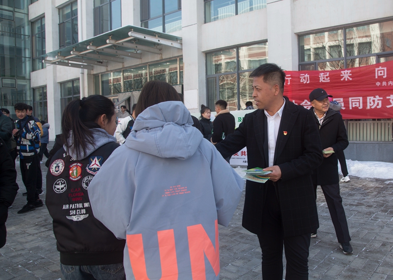 今天是第32个“世界艾滋病日”,主题是“社区动员同防艾,健康中国我行动”。为了增强大学新生对艾滋病的重视程度,提升自我保健意识和能力,增加同学们自我呵护和自我关爱意识,12月2日,由赛罕区疾控中心和内蒙古电子信息职业技术学院大学青年志愿者联合举行的大学生防艾知识宣传活动在餐饮中心门口举行,赛罕区疾控中心站长谭珍运,学校党委委员、宣传部部长李占岭,后勤管理处处长宋国松、副处长孙凤龙与青年志愿者共同参与了本次活动。