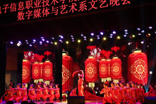 恰逢改革开放四十年,时光流转,盛事如约。2018年11月25日晚7点,在一片欢腾喜庆的气氛中,内蒙古自治区大学生首届文化艺术活动月暨内蒙古电子信息职业技术学院第十九届校园文化节数字媒体与艺术系“投身新时代,真知创未来,汇聚中国梦磅礴青春力量”文艺晚会在学院文体中心隆重举行。学院副院长阿拉坦巴根那、组织统战部部长张宏俊、宣传部部长宋国松、团委书记刘泽利、教师发展中心副主任王凤岐、图书馆馆长张利华、软件工程系副主任孙凤龙、团委副书记焦佼、团委社会实践部部长雷欣欣,各系学生科科长、团总支书记、辅导员、学生家长代表以及校友代表、校企合作企业嘉宾,与数字媒体与艺术系全体师生齐聚一堂欣赏晚会,奏响时代青春之音,共祝祖国繁荣昌盛,现场多元文化璀璨耀眼,师生尽展风采。