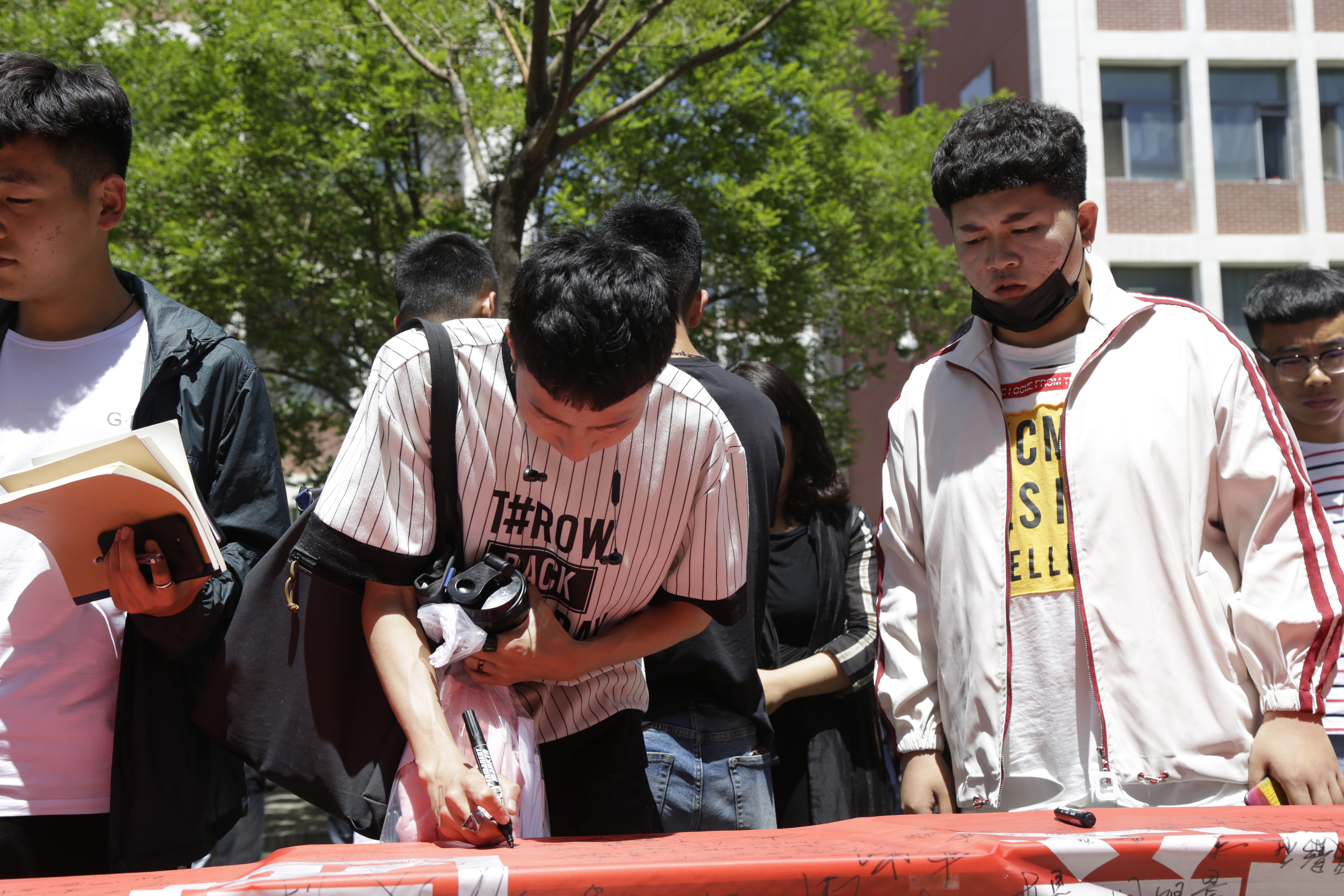 活动现场人头攒动,学院师生纷纷到横幅前签上自己的名字,表示禁烟的决心以及对创建“无烟校园”的支持。本次活动得到了社团业务指导单位和指导教师的大力支持,充分发挥了学生社团“自育+他育”的教育功能。