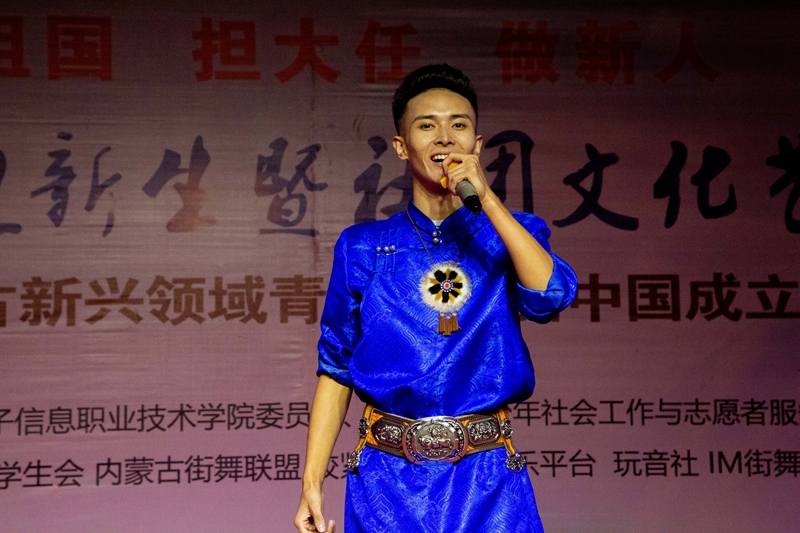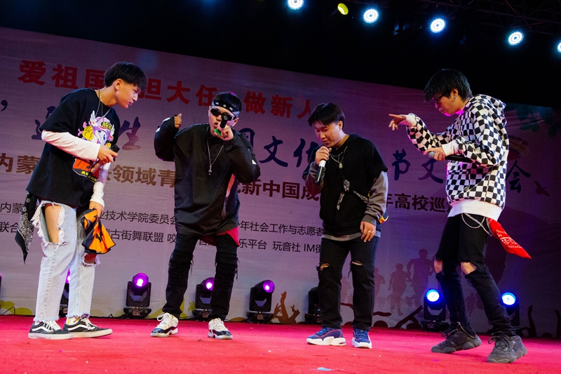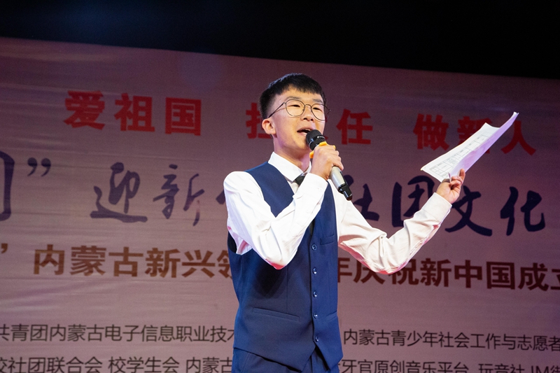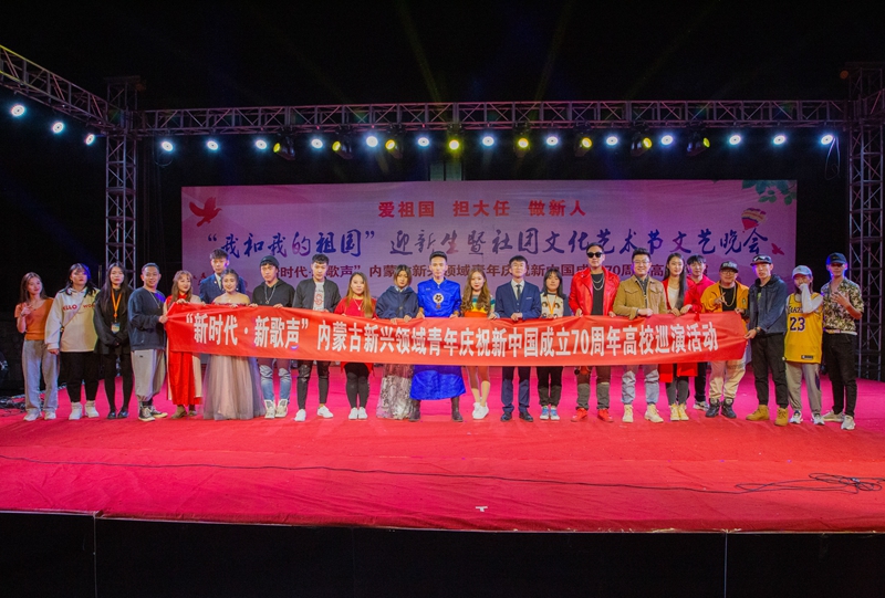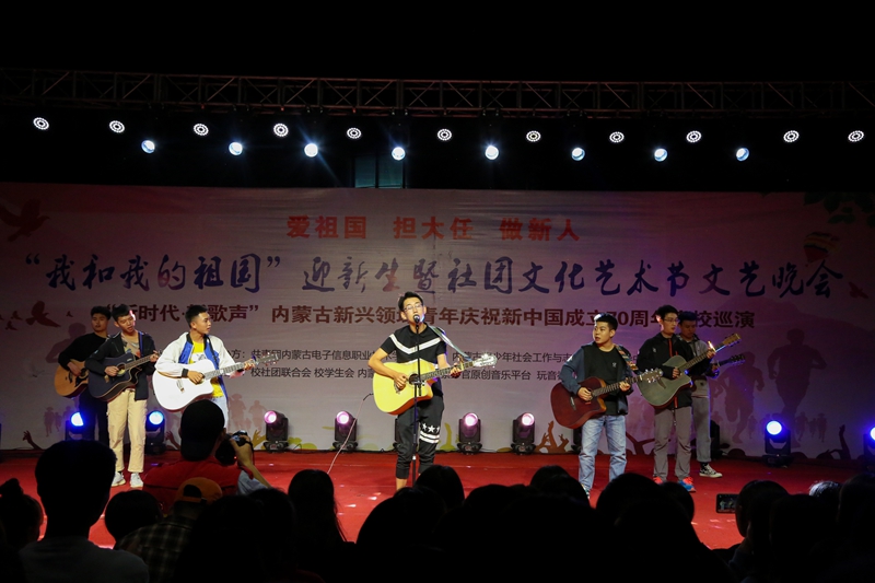 为庆祝中华人民共和国成立70周年,引导广大青年学生共抒爱国情怀、共话祖国新貌,9月24日晚,在创新创业园前广场,学校团委联合内蒙古青少年社会工作与志愿者服务指导中心举办“我和我的祖国”迎新晚会暨社团文化艺术节、“新时代·新歌声”内蒙古新兴领域青年庆高校巡演。学校党委委员、宣传部部长兼工会主席李占岭及相关部门负责人到现场观看。学校及各二级学院共十余个社团参与,并有“咬紧牙官”原创音乐平台、玩音社等社会团体为到场的同学们带来了一场精彩绝伦的视听盛宴。