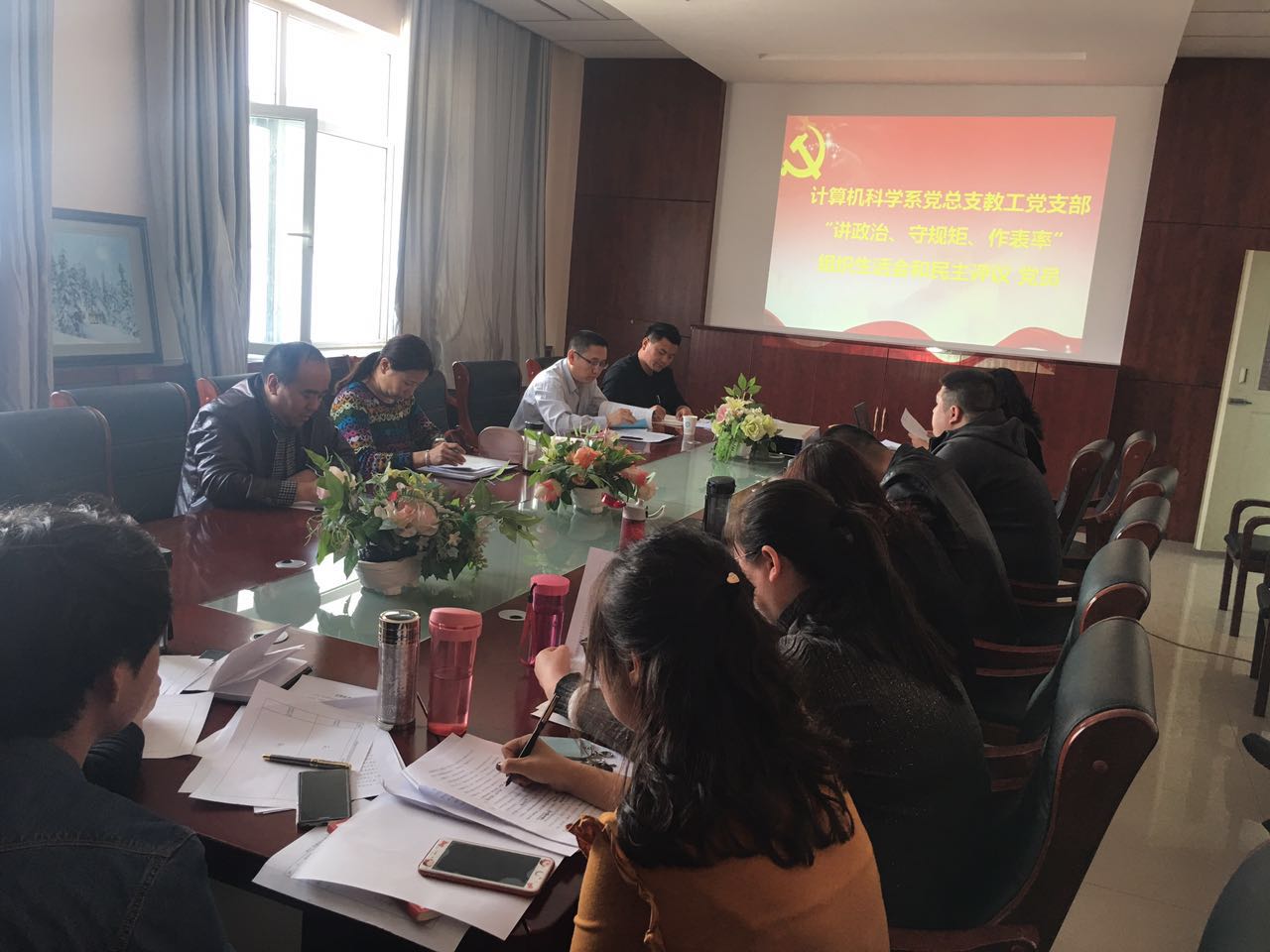 根据《关于召开学院2017年度基层党组织组织生活会和开展民主评议党员的通知》要求,在系党总支的统一安排下,教工党支部“讲政治,守规矩,作表率”专题组织生活会和民主评议党员工作经过充分准备于2018年3月13日顺利开展,系领导班子成员作为普通党员参加了会议。
