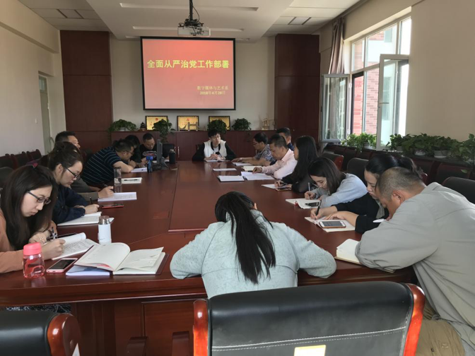 为进一步加强数字媒体与艺术系全面从严治党工作,落实管党治党政治责任,推进全面从严治党向纵深发展,部署党风廉政建设工作,数字媒体与艺术系于4月28日上午召开全面从严治党工作会议,数媒系全体党员参会,系党总支书记兼主任李占岭主持会议。