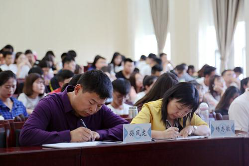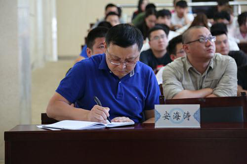 学院学生工作处处长安海涛老师认真记录并做总结讲话