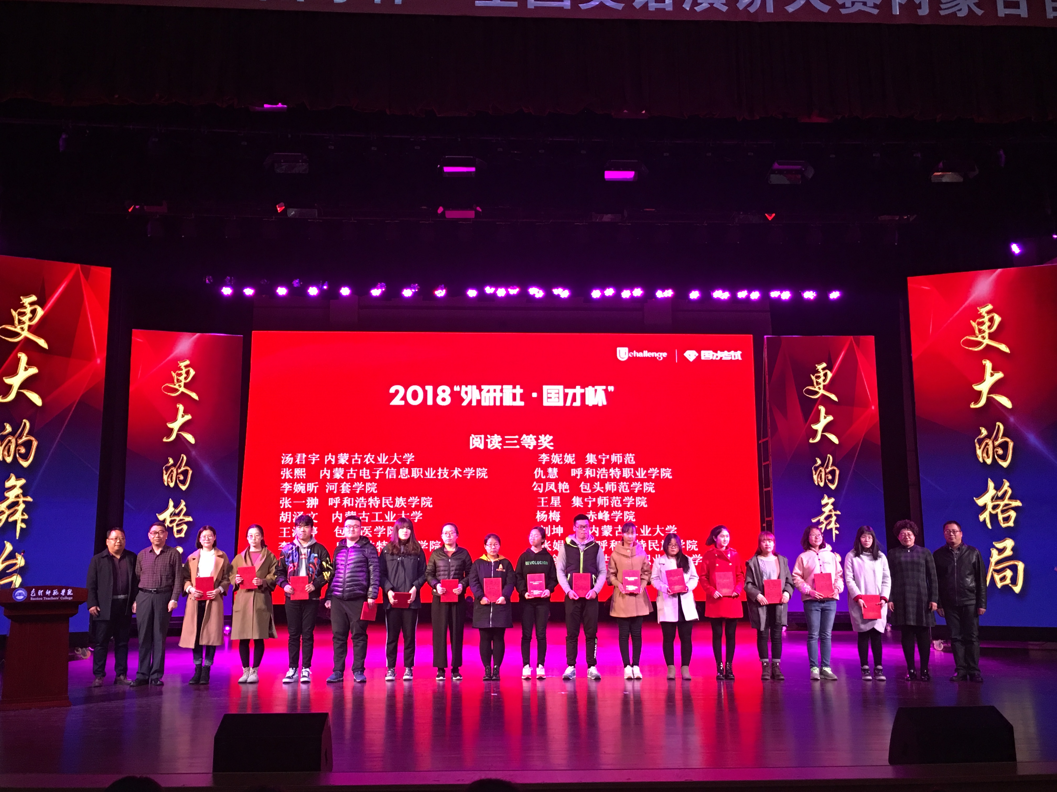 11月3日,“外研社•国才杯”全国英语演讲大赛、写作大赛、阅读大赛内蒙古自治区赛区复赛在包头师范学院圆满落幕,我院以基础教学部胡啸冲老师为领队,张媛老师,马莉老师为辅导教师,六名学生为选手的参赛团队参加了三项大赛,本次赛事共有来自全区各本科、高职高专院校选派的120多名选手参加。
