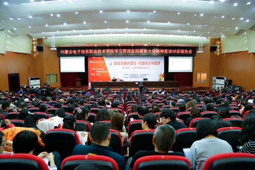 王生铁强调,全体教职员工要把学习宣传贯彻全国教育大会精神作为当前和今后一段时期的首要政治任务,结合学院实际,以创新发展行动计划项目和任务、国家优质校建设、教学工作诊断与改进作为重点任务,扎实推进师德建设、高水平人才引进与培养、教师能力提升、职称评审改革、绩效工资和岗位聘任制度完善等工作,以学为人师、行为世范、争做“四有”好老师的教师品德要求自己,力争到“十三五”末,把我院建设成为自治区一流、国内知名的高职院校。