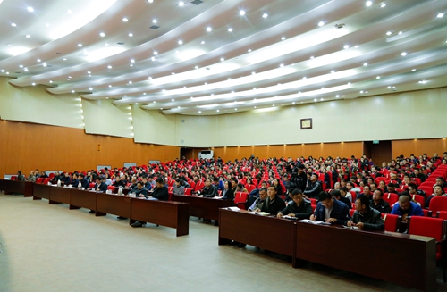 学院党委书记张鹏宇,副院长蒋蒙安、巴根那,院长助理刘友仁与全体教职工共500余人参加报告会。会议由院长助理吉雪峰主持。