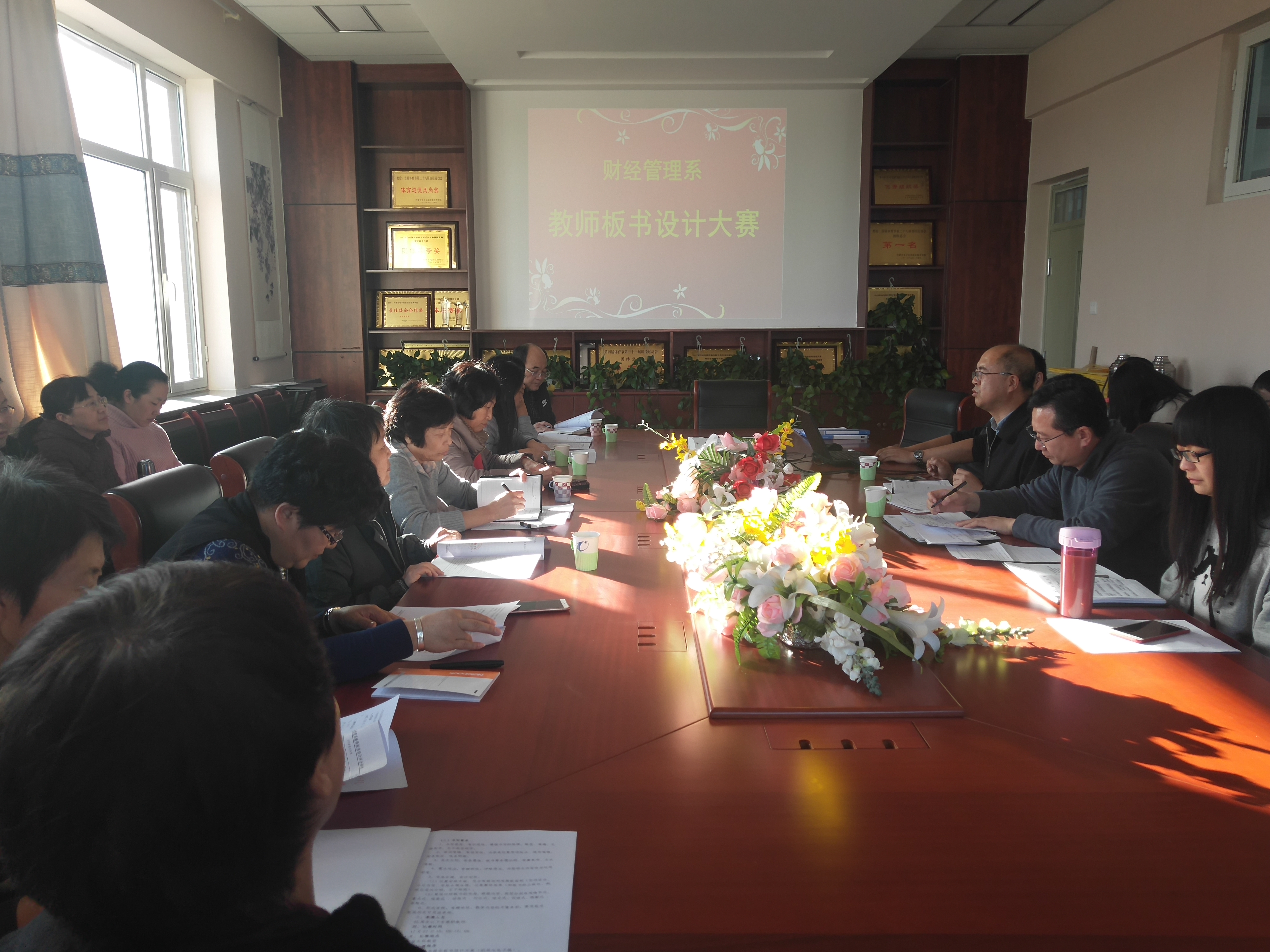 本次比赛由财经管理系教办组织,从前期策划、赛前培训、动员到比赛实施我们都做了充分的准备。赛前培训阶段,财经管理系邀请了内蒙古师范大学徐继红教授就《板书设计策略》进行了培训,将系内多名教学经验丰富的老师对板书设计的心得体会录制成短片在全系进行宣传。让我系专兼职教师、外聘教师都能认识到院系开展“简易方式评价教师课堂教学”的重要意义,理解教学质量是院系发展的生命线。