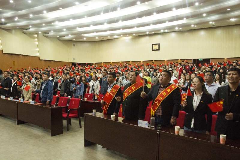4月30日下午,学校一号报告厅气氛热烈,我校2019年“青春心向党 建功新时代”五四团学表彰大会隆重召开。学校党委书记张鹏宇,党委副书记、纪委书记张涵义,党委委员、副校长蒋蒙安、阿拉坦巴根那,党委委员、组织(统战)部部长张宏俊,党委委员、宣传部部长兼工会主席李占岭出席大会。学生处、团委及各二级学院、附属中专学校相关负责人、团学管理工作人员和各级学生代表共500余人参加大会。大会由学校团委书记刘泽利主持。