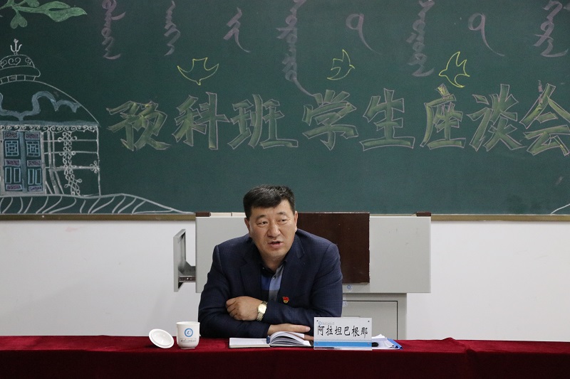 为全面了解我校少数民族预科学生的学习、生活习惯以及在校期间的思想动态等,加强与少数民族学生的情感交流,在上周座谈会的基础上, 5月16日晚自习,校党委委员、副校长阿拉坦巴根那主持召开第二场少数民族预科学生座谈会。阿拉坦巴根那副院长作为全校少数民族学生的总辅导员与各民族预科班共35名学生代表进行了情深意切的谈心谈话。