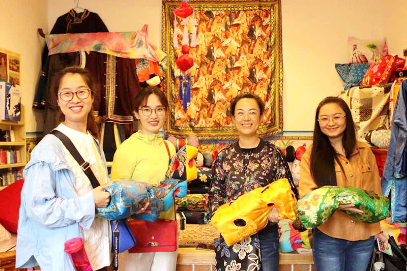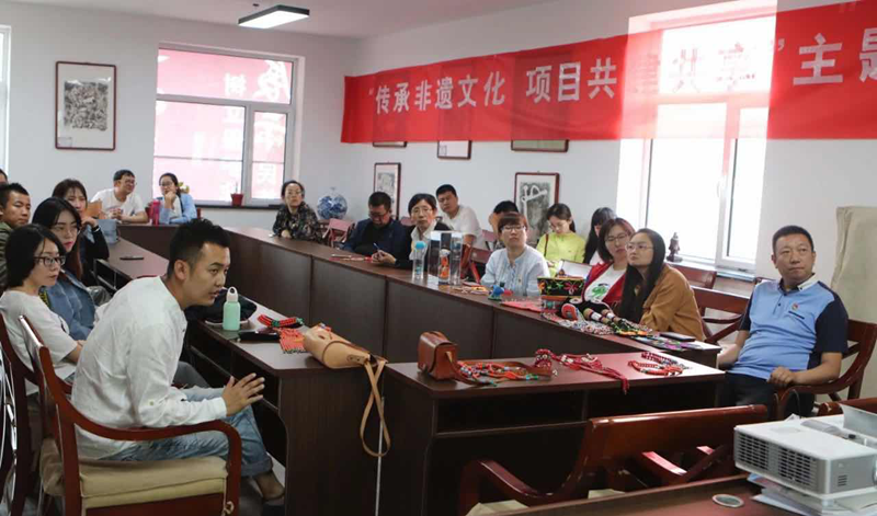 全体党员教师跟随讲解员漫步于莫尼山非遗小镇的游览区、非遗博物馆、非遗研学基地、爱国主义教育基地,深切地感受到中华民族文化的博大精深。参观结束之后全体教师与莫尼山非遗小镇的工艺匠人展开了深入的学习交流研讨会。研讨会中非遗匠人讲述了如何传承非遗技艺及相关文化知识,呼吁大家热爱、保护和传承非遗文化。研讨会中张美枝书记向非遗小镇发出邀请,希望非遗匠人同数媒与艺术设计学院建立交流合作。以此促进专业发展,给学生提供更加广阔的实践平台。学习交流研讨会结束后,党员教师参观了非遗项目传承人贾宏伟的格日勒皮艺工作室,贾宏伟团队创作的皮雕花精选草原天然优质牛皮,精雕细琢精益求精。皮艺制品采用描绘、着色、层染、抛光等现代工艺加工,通过上百道工序纯手工打造而成。通过参观、交流研讨,老师们深切感受到我国非物质文化遗产滋养心灵的独特文化魅力。