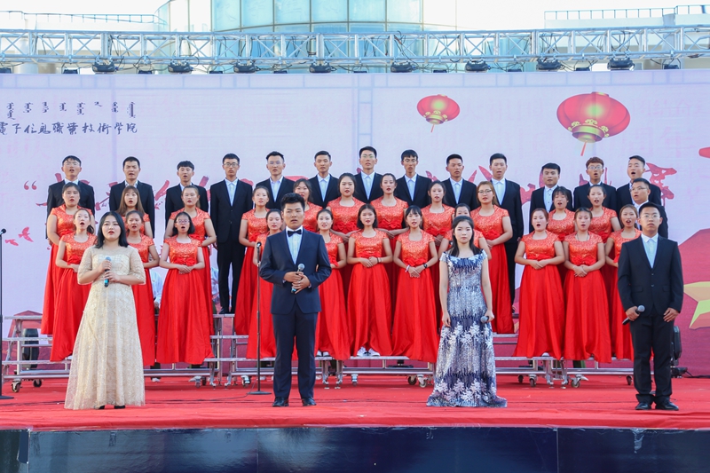 为庆祝中华人民共和国成立70周年,引导广大青年学生共抒爱国情怀,根据《关于组织开展内蒙古电子信息职业技术学院“我和我的祖国”主题宣传教育活动的通知》安排,9月24日下午,由学院团委承办,各二级学院和附属中专协办的“我爱你中国”新生合唱比赛在创业园门前广场举行。校团委和各二级学院、附属中专团总支负责人现场观看比赛,比赛邀请宣传部宣传思想教育科科长袁月天、数媒与艺术学院音乐专业教师武晓霞、李瑞老师担任评委。共有11支新生参赛队伍参加比赛。