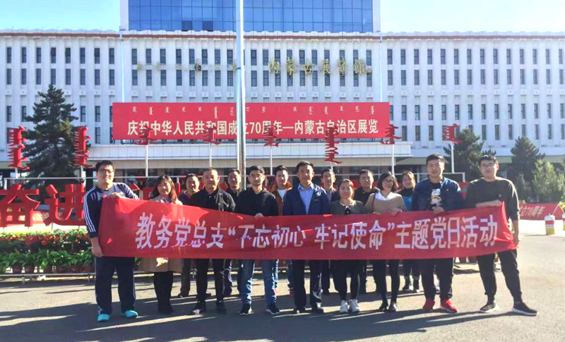 今年,中华人民共和国迎来了自己的70华诞。“我爱你,中国”是我们由衷的礼赞,“奋斗吧,中华儿女”是我们共同的心声。10月8日下午,教务党总支走进内蒙古展览馆开展“不忘初心、牢记使命”主题党日活动,参观“庆祝中华人民共和国成立70周年--内蒙古自治区展览”。