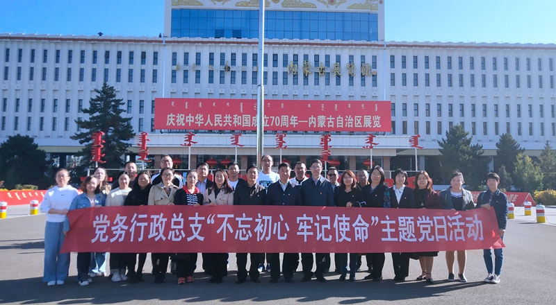 为庆祝新中国成立70周年,丰富“不忘初心,牢记使命”主题教育形式,学校党务行政党总支将思想政治学习融入参观活动,10月8日下午,全体党员走进内蒙古展览馆,参观“庆祝中华人民共和国成立70周年--内蒙古自治区展览”。