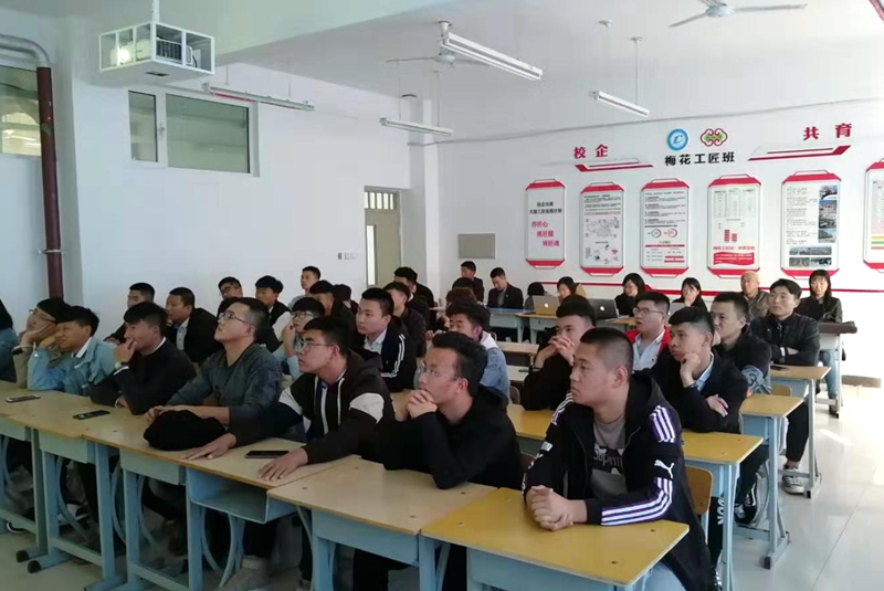 梅花工匠班全体学员和我院系部主任、专业负责人,一起聆听了讲座,讲座后各系部主任和专业负责人还与赵主管就机电一体化技术在企业生产过程中的实际应用情况进行了交流,为后续开展校企合作,合作开发课程奠定了良好基础。
