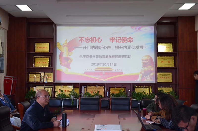 按照“不忘初心,牢记使命”主题教育工作部署,10月14日下午,电子商务学院党总支召开教育教学专题调研座谈会。座谈会由副院长陈杰主持,工商管理系主任蒙瑞珍、公共管理系主任乔祯、财会系主任寿震坤、各系教师代表、外聘教师代表及学生代表参加调研座谈会。