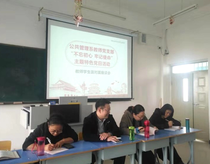 为深入开展“不忘初心、牢记使命”主题教育,引导教师党员自觉将思想和行动统一到习近平总书记重要讲话精神上来,10月15日,电子商务学院公共管理系党支部结合工作实际,抓住新生适应大学生生活的契机,组织开展了“不忘初心,教学相长”教师学生面对面座谈会。