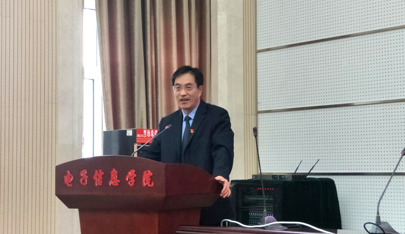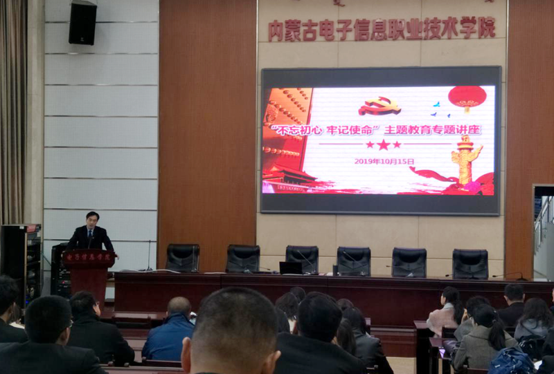 10月15日下午,在行政楼2号报告厅,马克思主义与通识教育学院党总支、电子与自动化学院党总支共同举办“不忘初心、牢记使命”主题教育专题讲座,邀请内蒙古师范大学马克思主义学院党总支书记贺瑞教授为师生作题为《不忘初心,做合格党员》专题讲座,会议由马克思主义与通识教育学院党总支书记孟庆新主持。